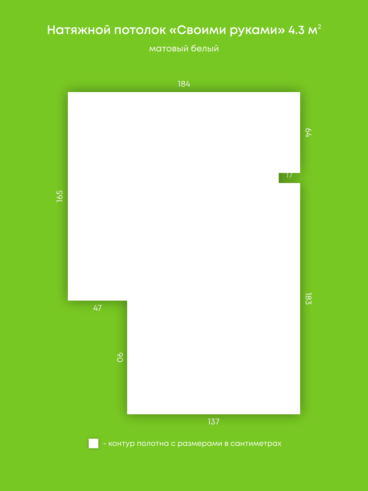 Натяжной потолок белый матовый, изготовленный по индивидуальным размерам покупателя, для помещения площадью 4.3 м2