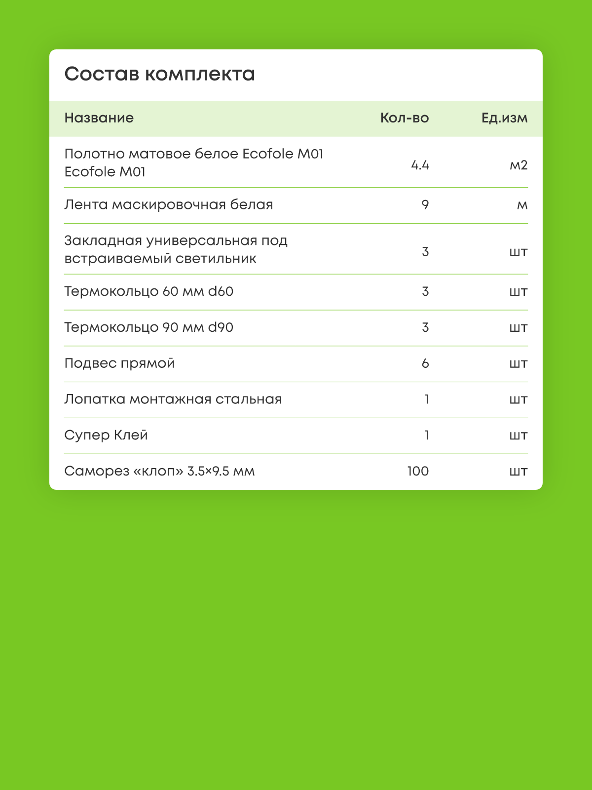 Натяжной потолок белый матовый, изготовленный по индивидуальным размерам покупателя, для помещения площадью 4.4 м2
