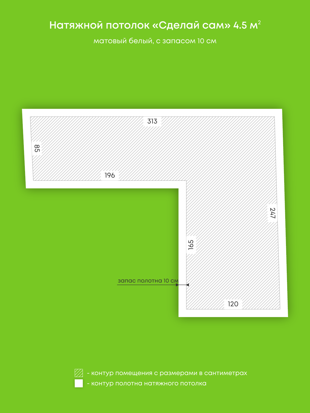 Натяжной потолок белый матовый, изготовленный по индивидуальным размерам покупателя, для помещения площадью 4.5 м2