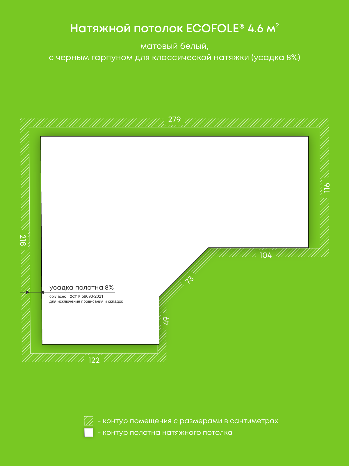 Матовый натяжной потолок 4.6 м2