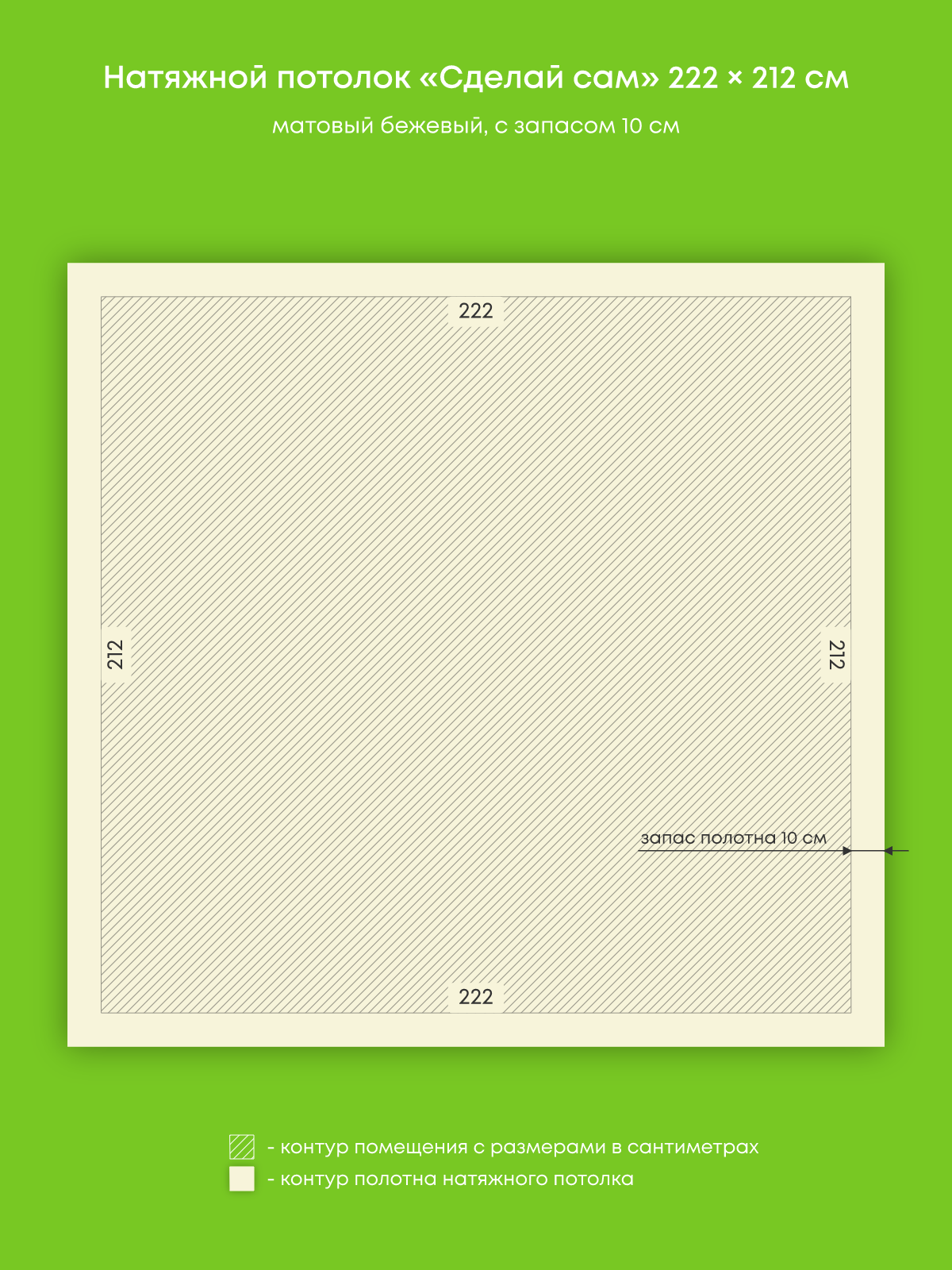 Натяжной потолок бежевый матовый, изготовленный по индивидуальным размерам покупателя, для кухни площадью 4.7 м2