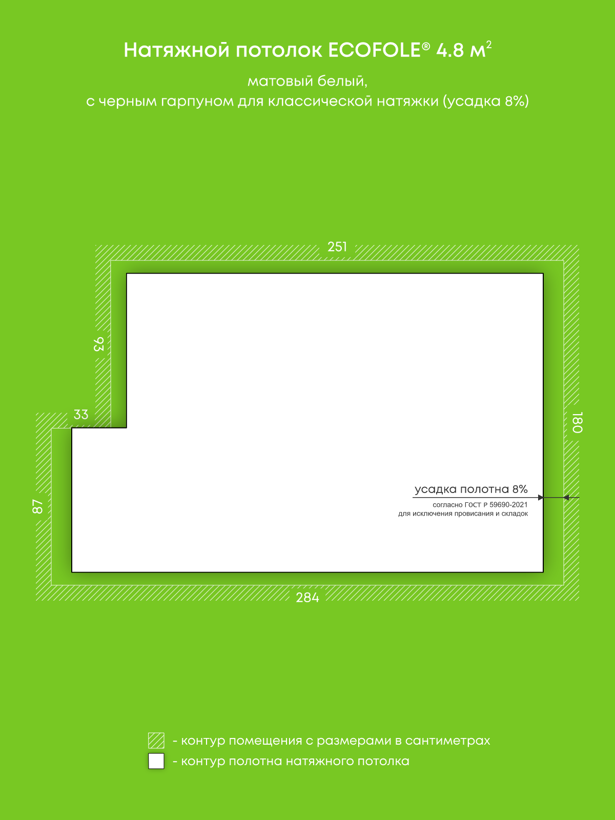 Матовый натяжной потолок 4.8 м2