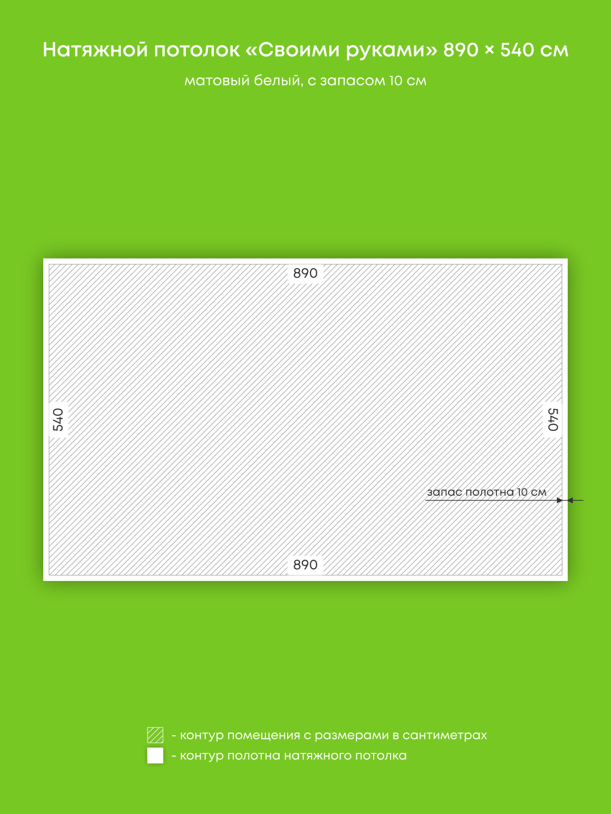 Натяжной потолок белый матовый, изготовленный по индивидуальным размерам покупателя, для спальни площадью 48.1 м2
