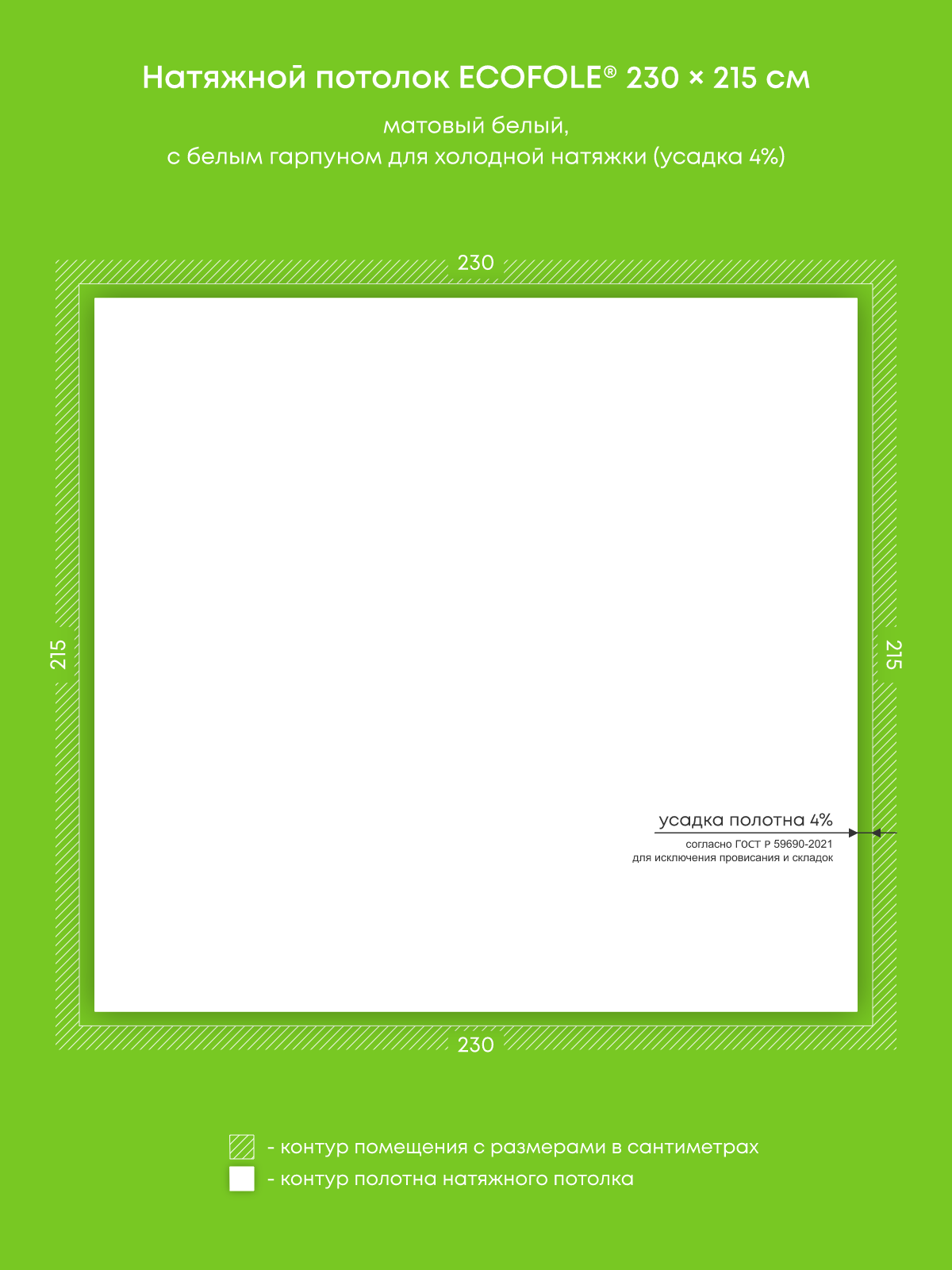 Натяжной потолок белый матовый, изготовленный по индивидуальным размерам покупателя, для кухни площадью 4.9 м2