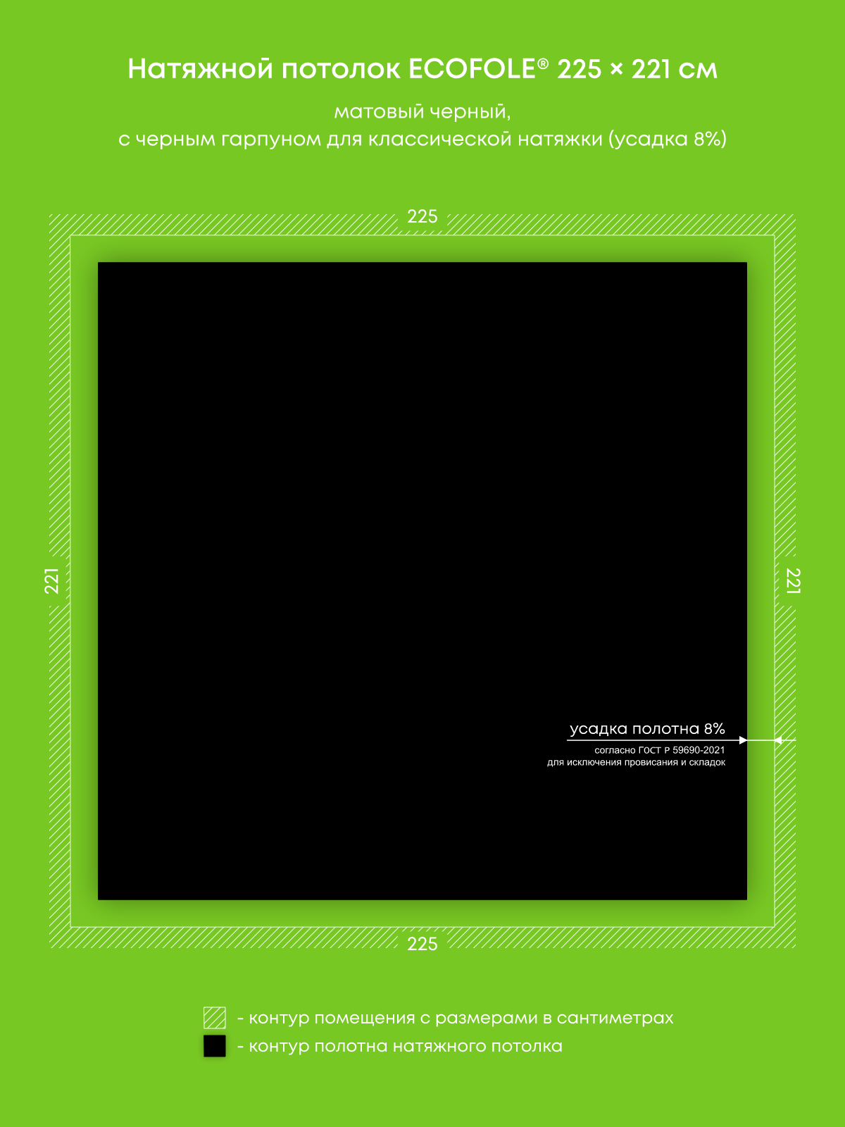 Натяжной потолок черный матовый, изготовленный по индивидуальным размерам покупателя, для комнаты площадью 5 м2