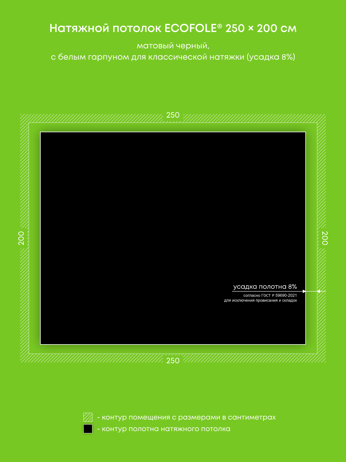Натяжной потолок черный матовый, изготовленный по индивидуальным размерам покупателя, для помещения площадью 5 м2