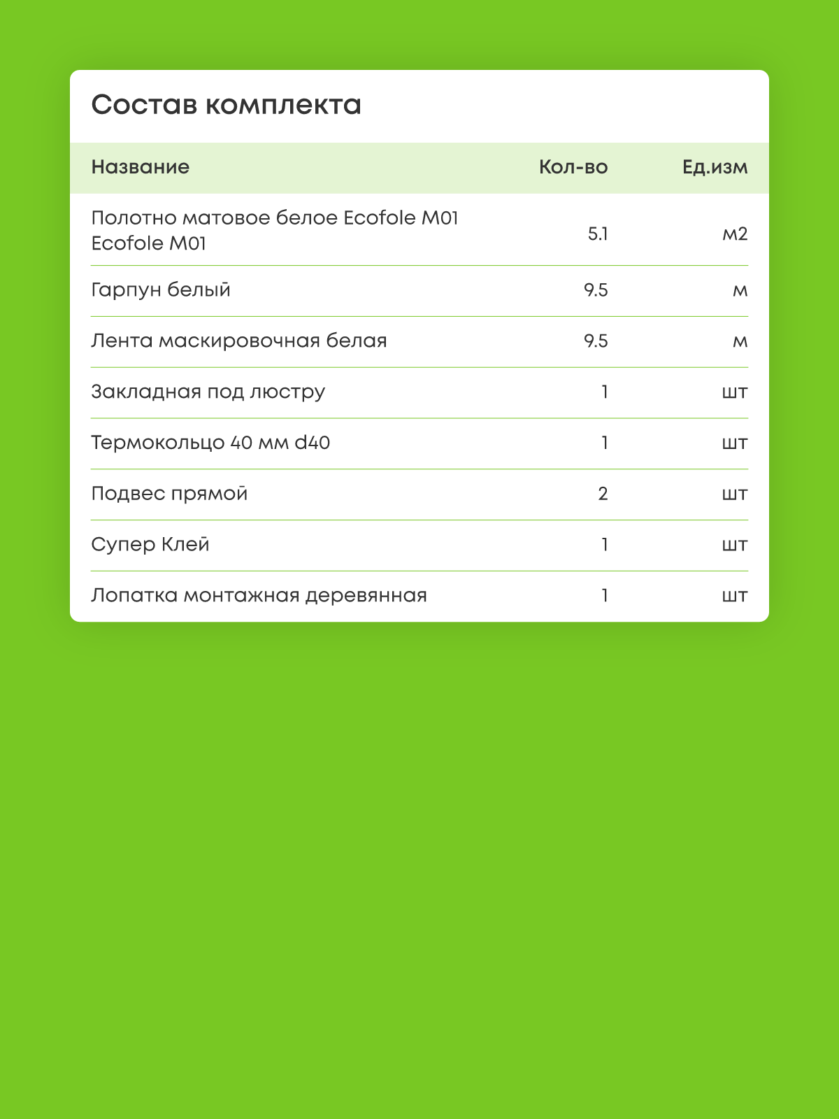 Натяжной потолок белый матовый, изготовленный по индивидуальным размерам покупателя, для помещения площадью 5.1 м2