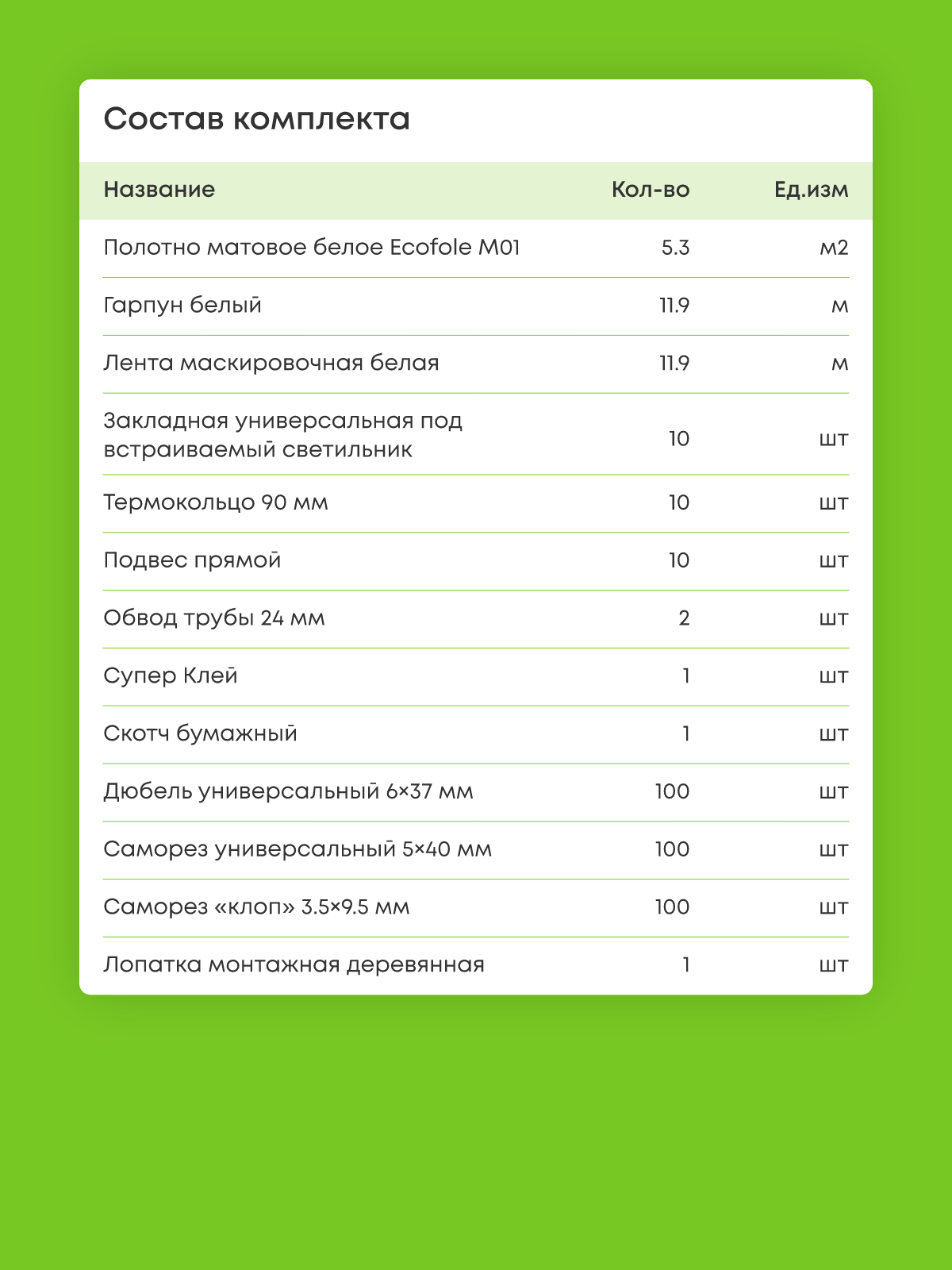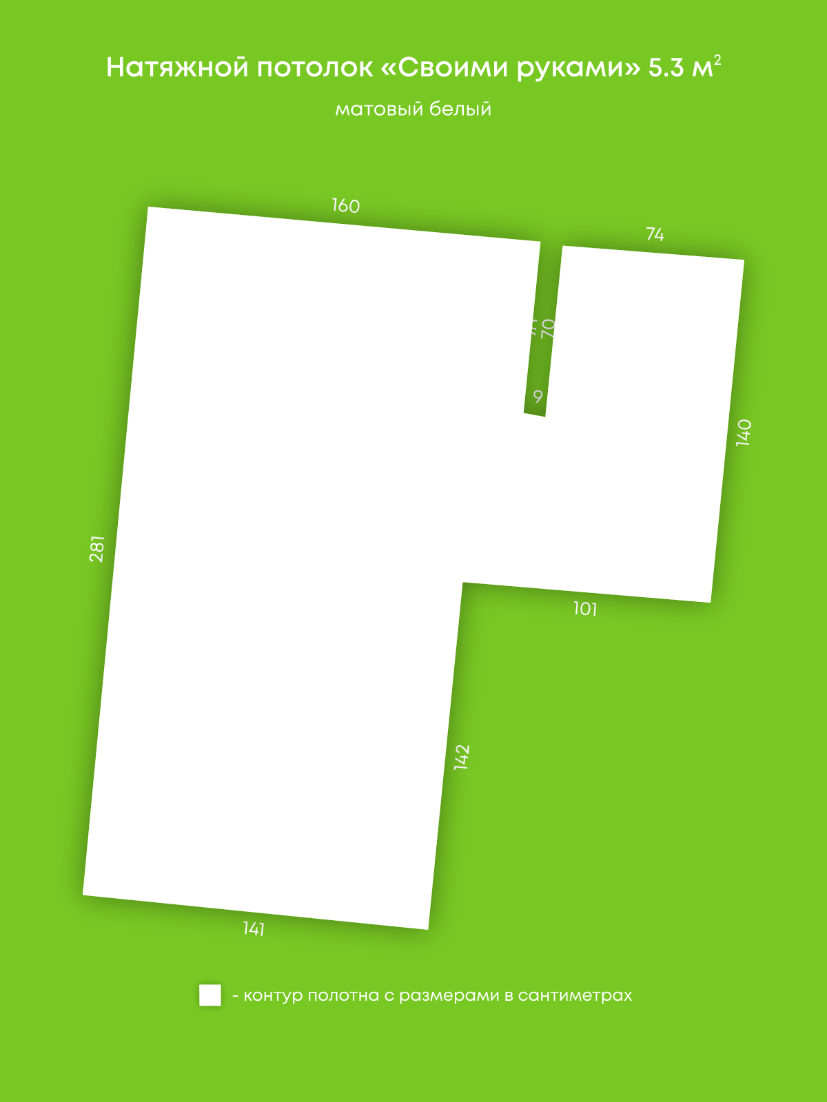 Натяжной потолок белый матовый, изготовленный по индивидуальным размерам покупателя, для помещения площадью 5.3 м2