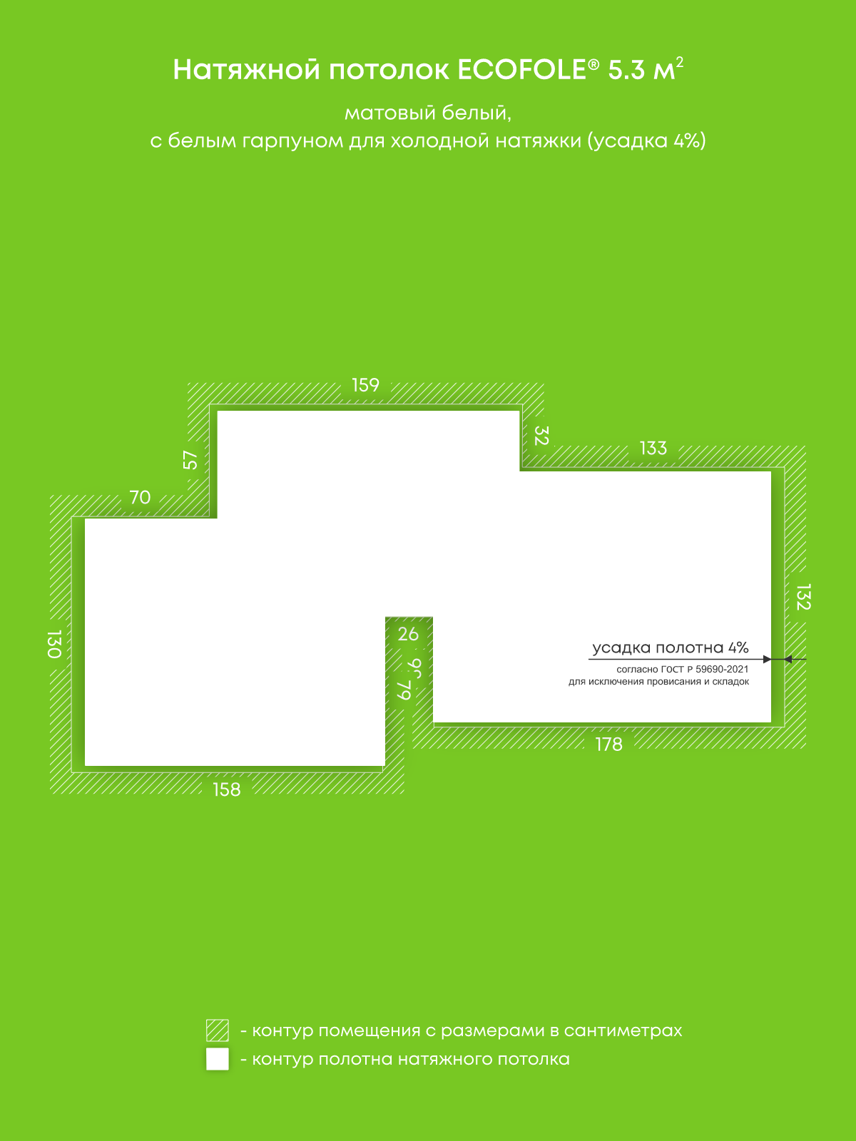 Матовый натяжной потолок 5.3 м2