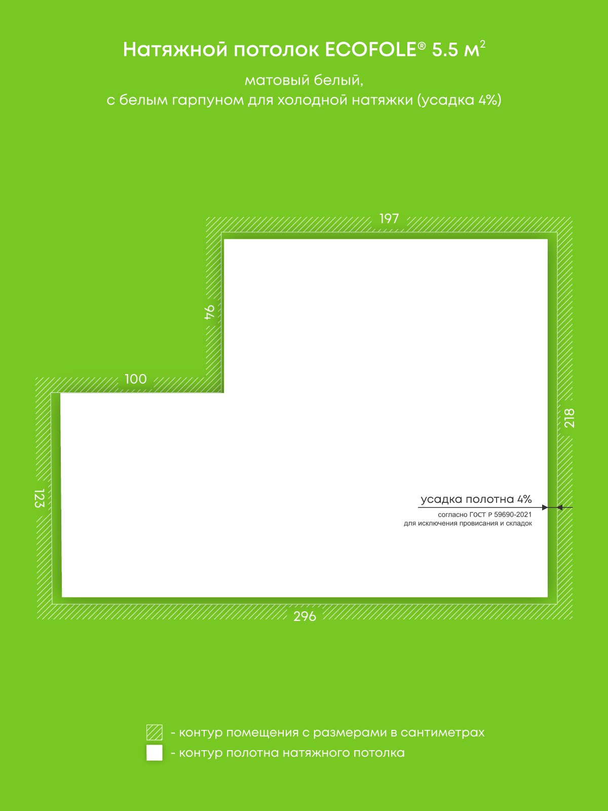 Матовый натяжной потолок 5.5 м2