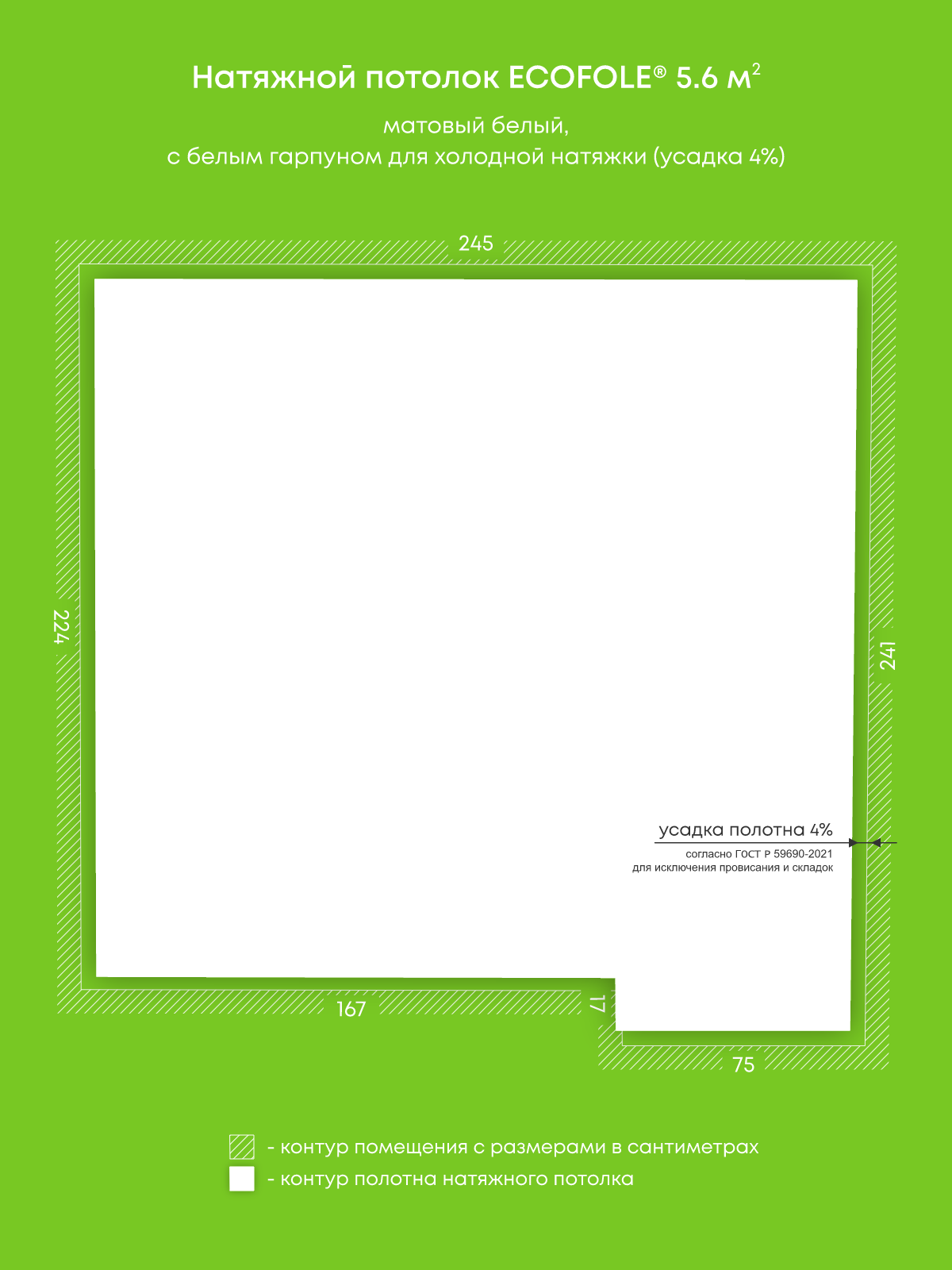 Натяжной потолок белый матовый, изготовленный по индивидуальным размерам покупателя, для кухни площадью 5.6 м2