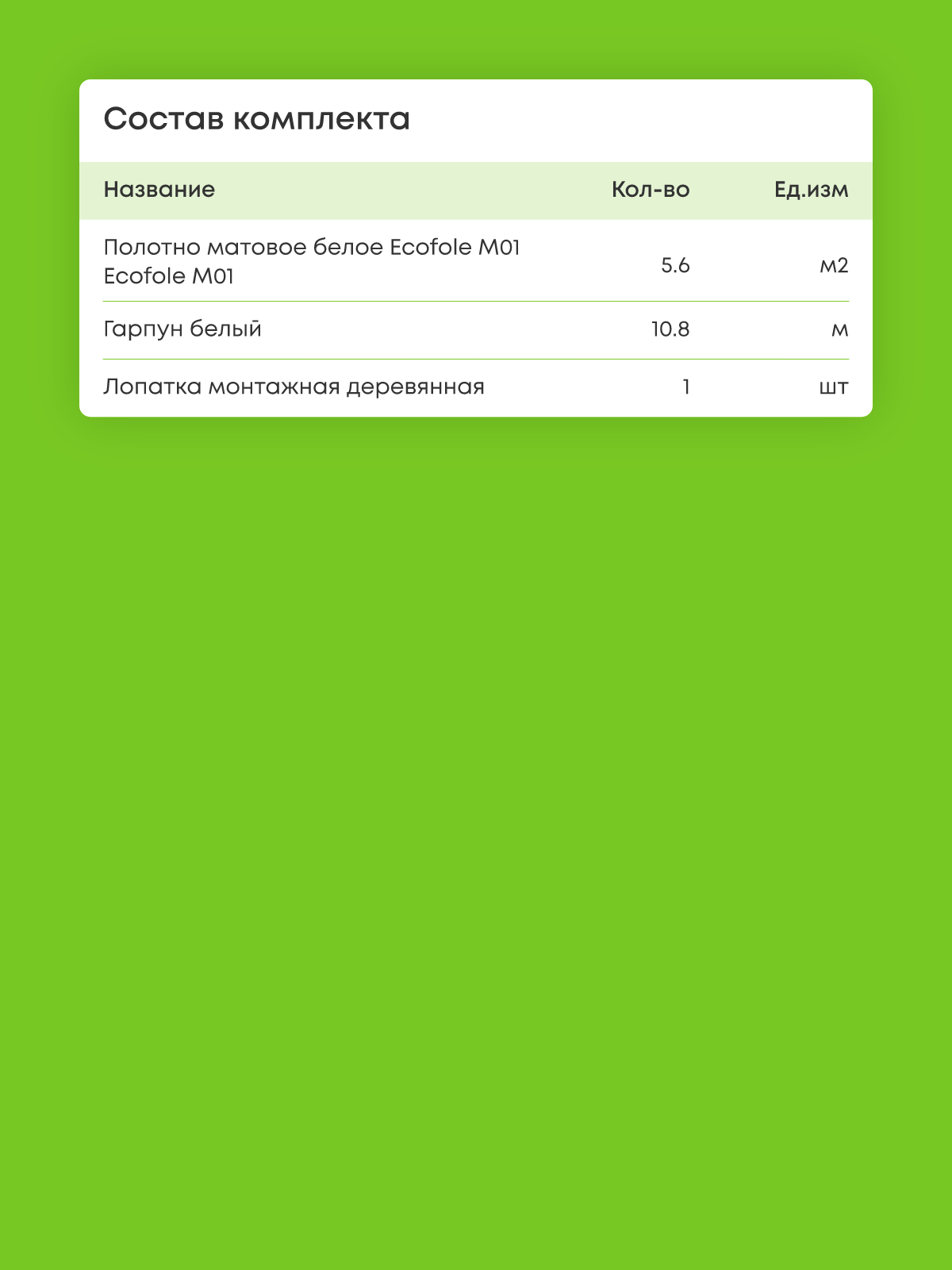Натяжной потолок белый матовый, изготовленный по индивидуальным размерам покупателя, для помещения площадью 5.6 м2