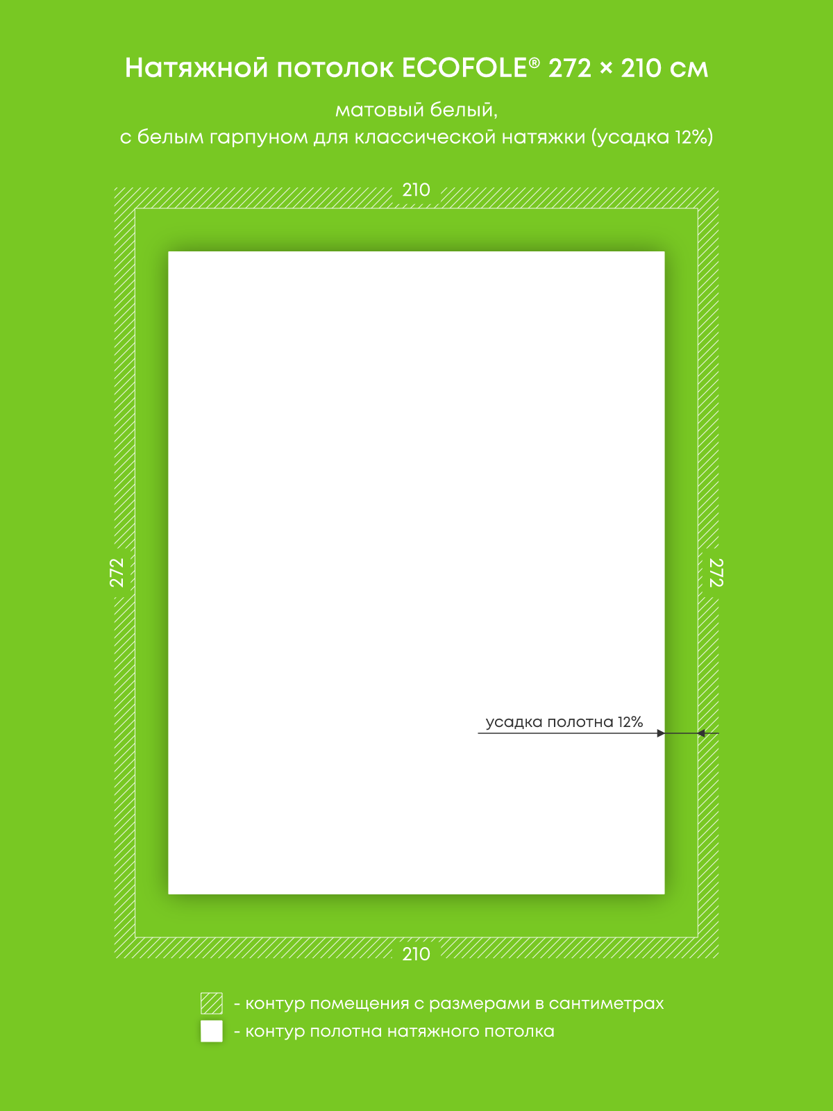 Натяжной потолок белый матовый, изготовленный по индивидуальным размерам покупателя, для комнаты площадью 5.7 м2