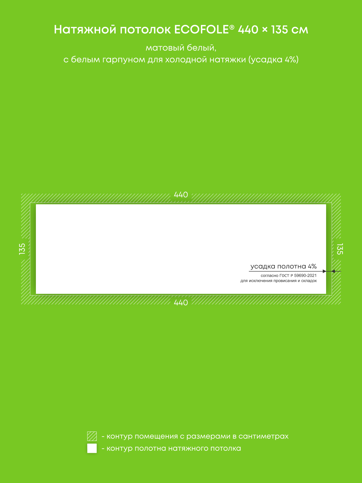 Натяжной потолок белый матовый, изготовленный по индивидуальным размерам покупателя, для помещения площадью 5.9 м2