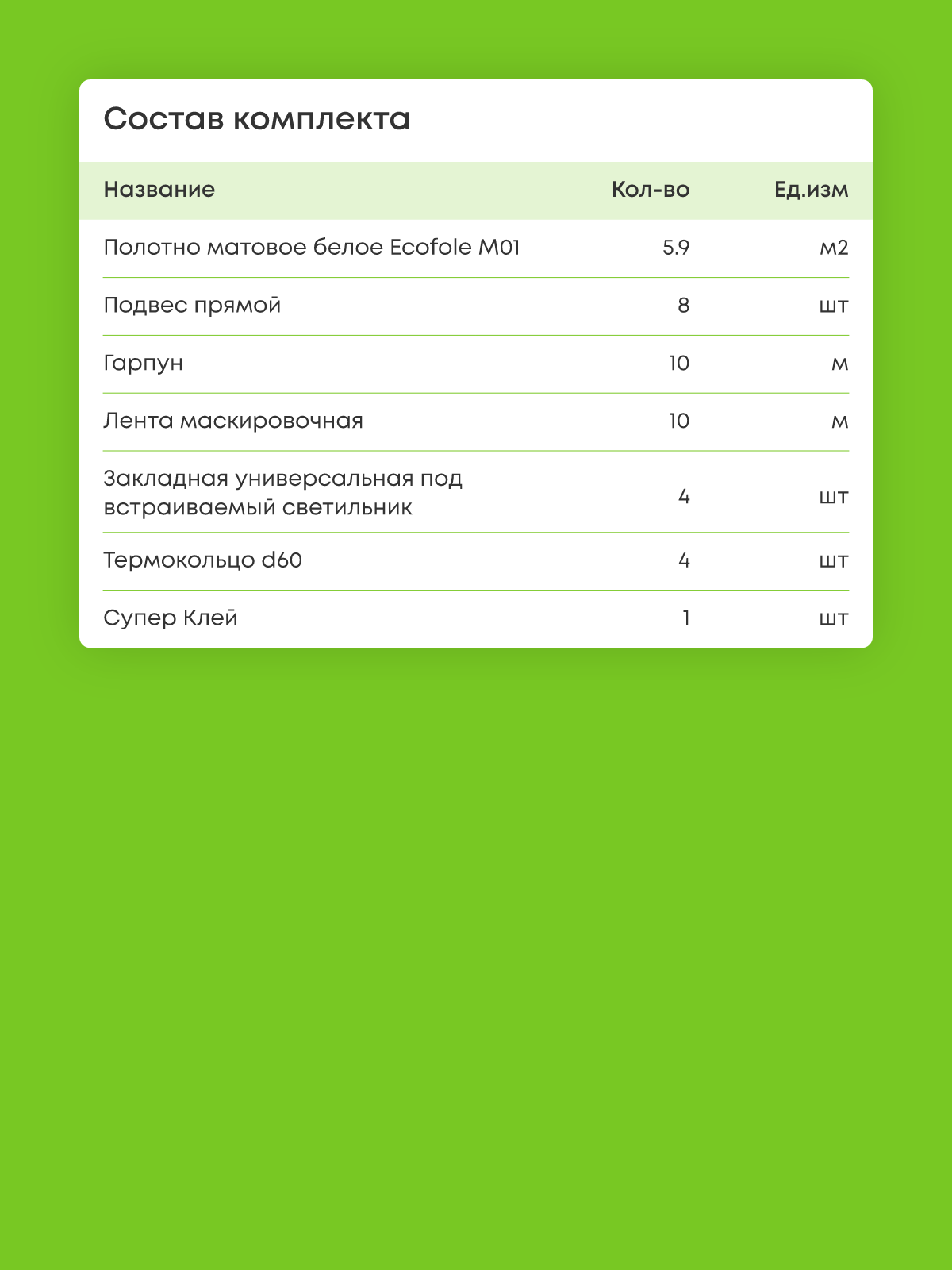 Натяжной потолок белый матовый, изготовленный по индивидуальным размерам покупателя, для помещения площадью 5.9 м2