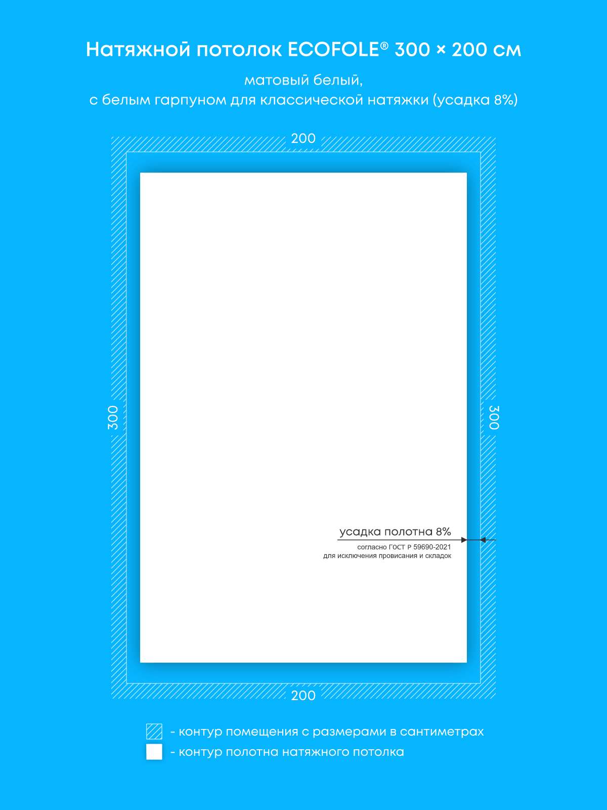 Матовый натяжной потолок 6 м2