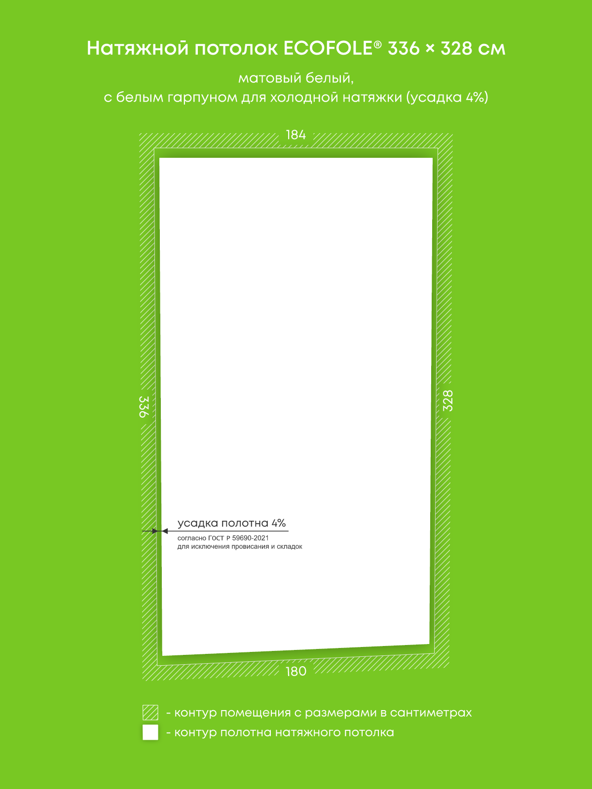 Матовый натяжной потолок 6 м2