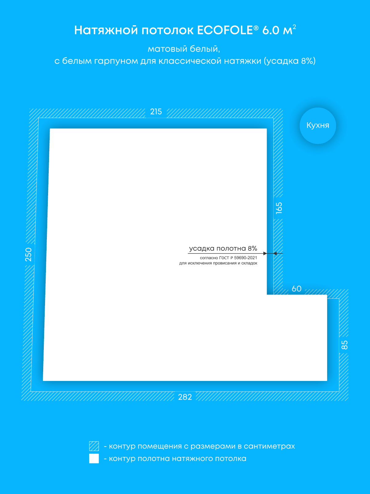 Матовый натяжной потолок 6 м2