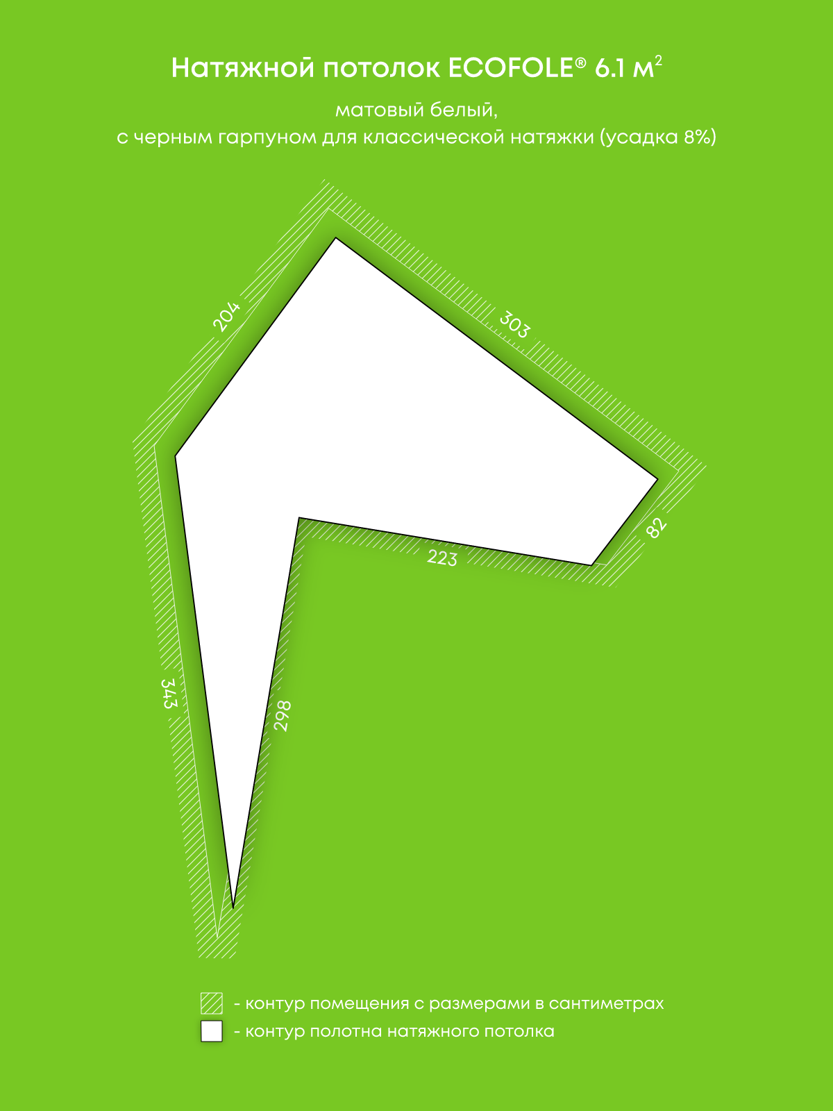 Натяжной потолок белый матовый, изготовленный по индивидуальным размерам покупателя, для помещения площадью 6.1 м2