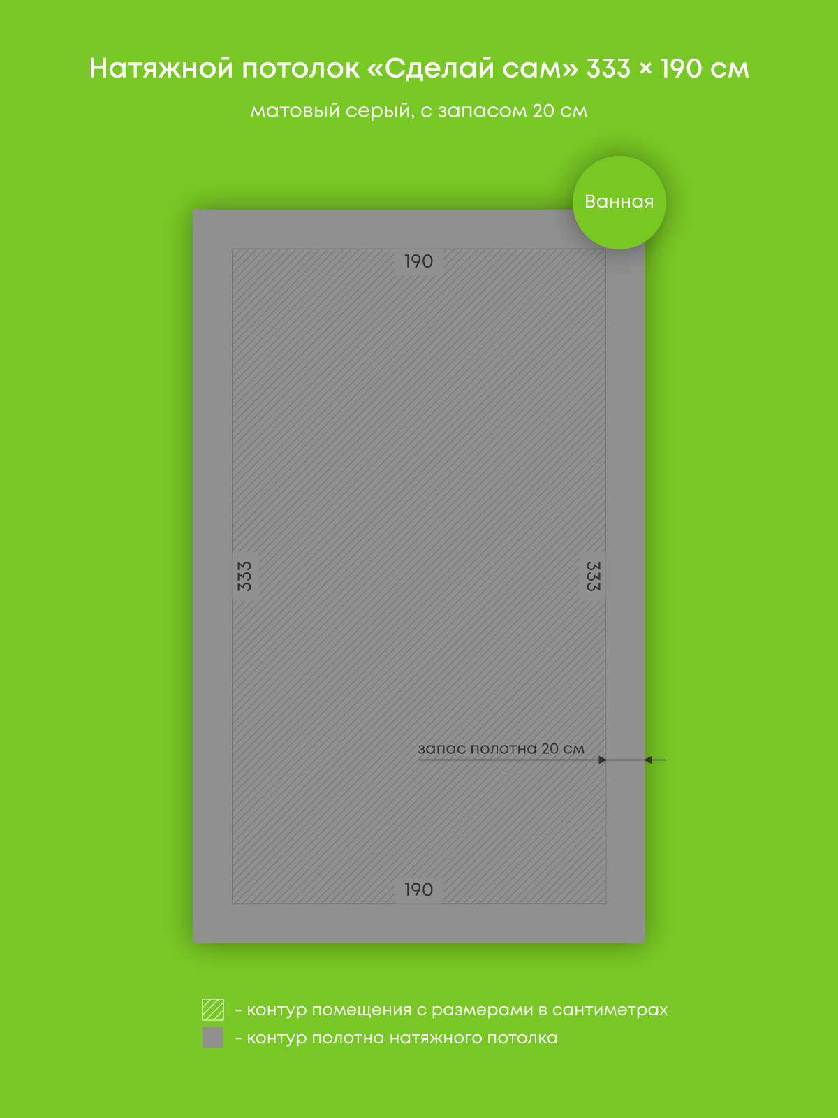 Натяжной потолок серый матовый, изготовленный по индивидуальным размерам покупателя, для ванной площадью 6.3 м2