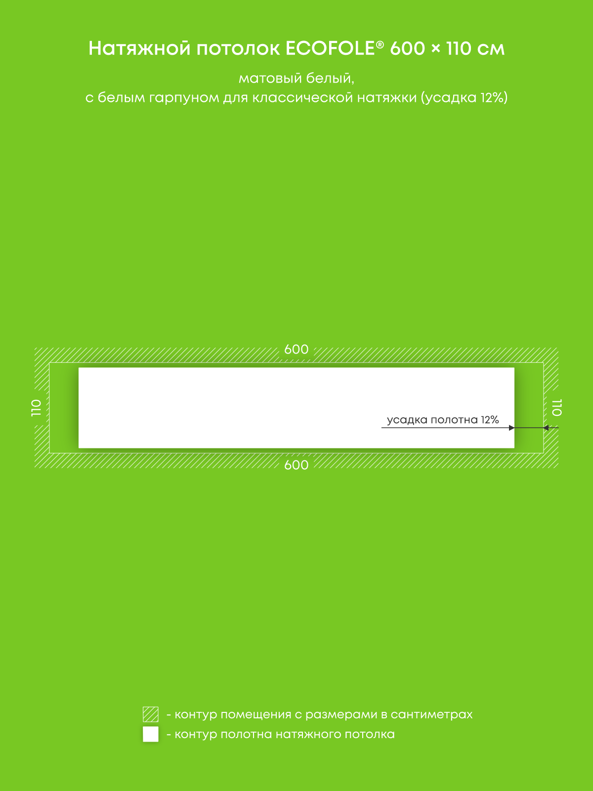 Натяжной потолок белый матовый, изготовленный по индивидуальным размерам покупателя, для ванной площадью 6.6 м2