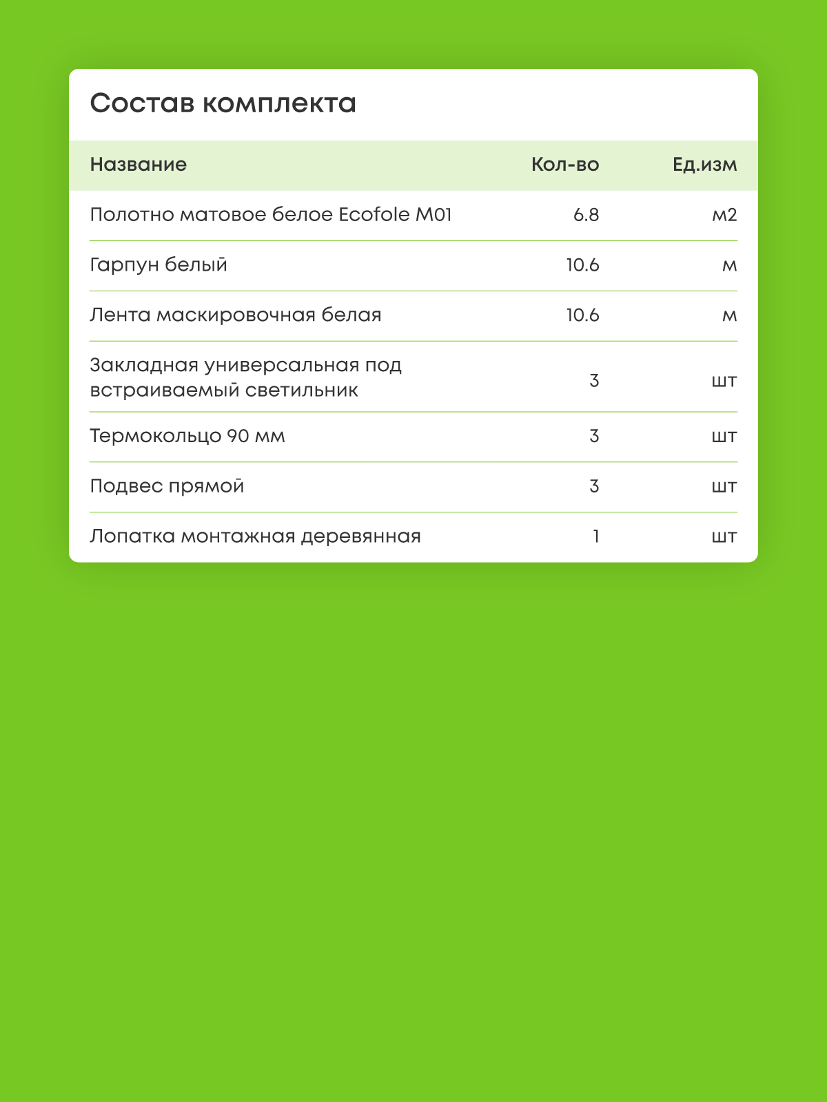 Натяжной потолок белый матовый, изготовленный по индивидуальным размерам покупателя, для помещения площадью 6.8 м2