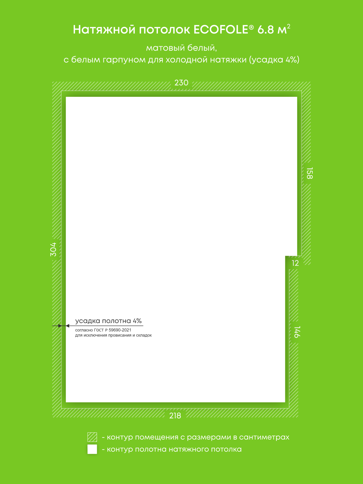 Матовый натяжной потолок 6.8 м2
