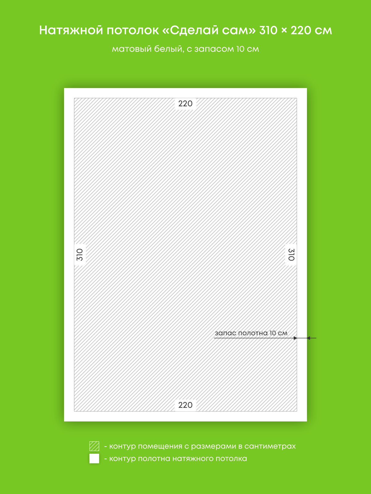 Натяжной потолок белый матовый, изготовленный по индивидуальным размерам покупателя, для кухни площадью 6.8 м2