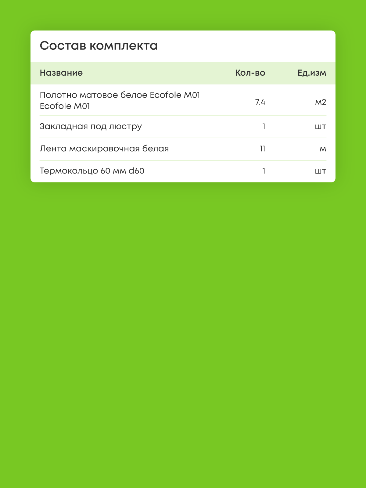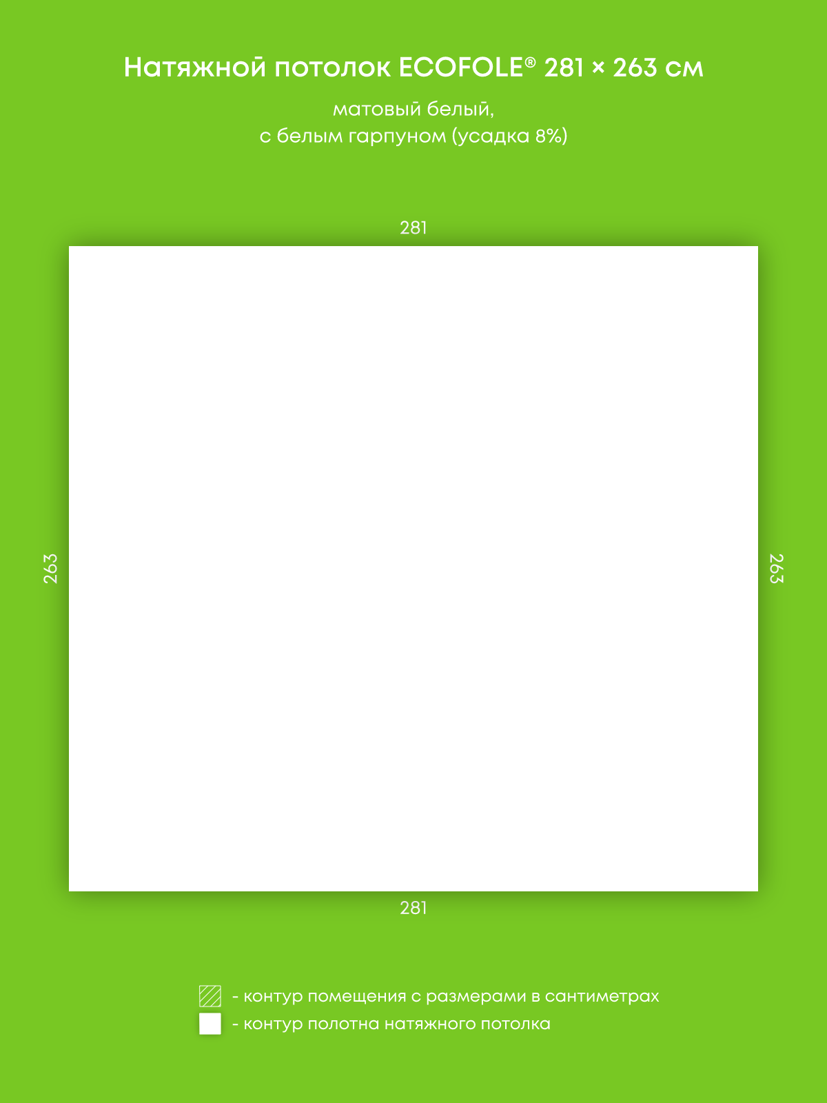 Натяжной потолок белый матовый, изготовленный по индивидуальным размерам покупателя, для помещения площадью 7.4 м2