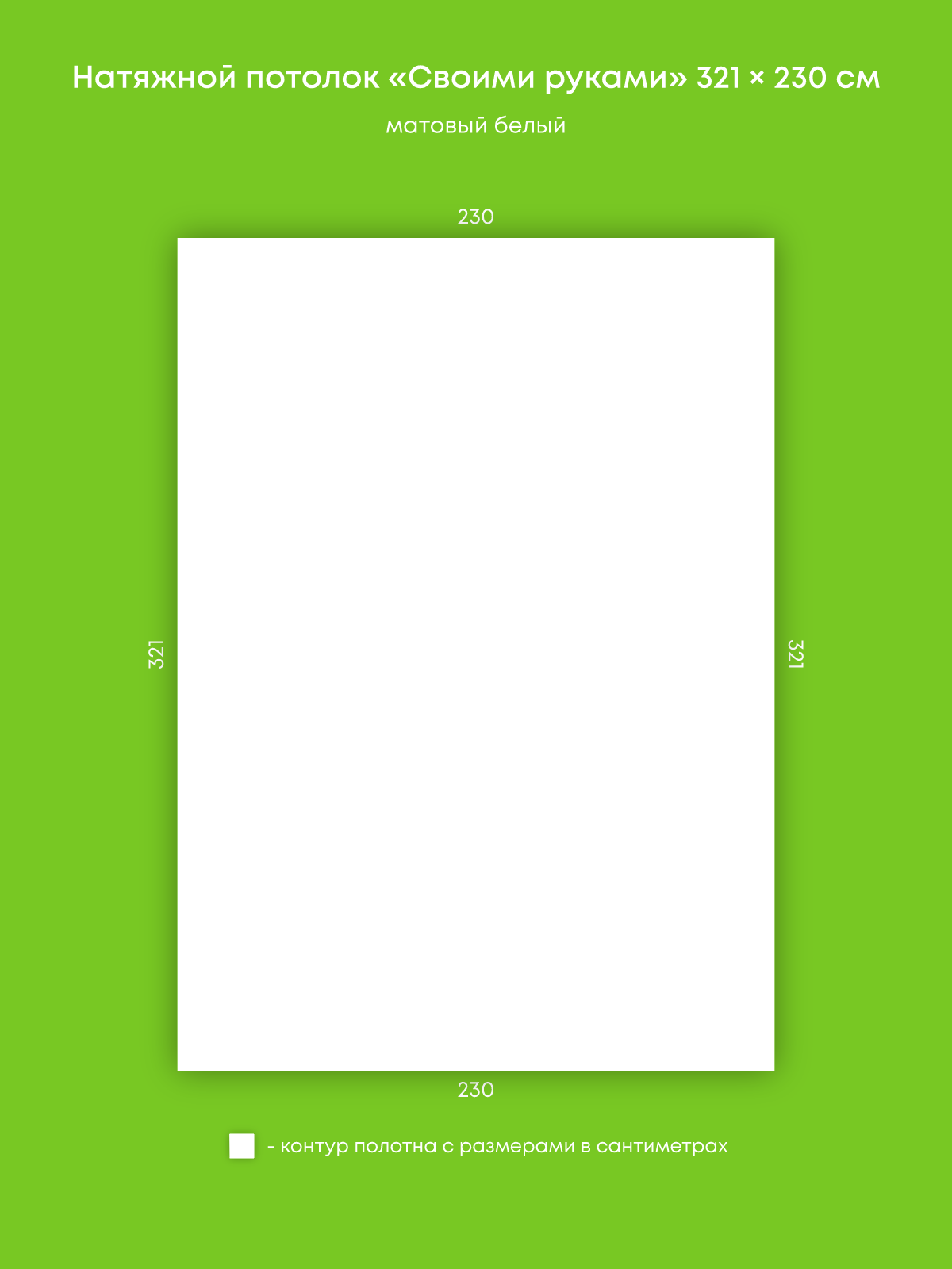 Натяжной потолок белый матовый, изготовленный по индивидуальным размерам покупателя, для помещения площадью 7.4 м2