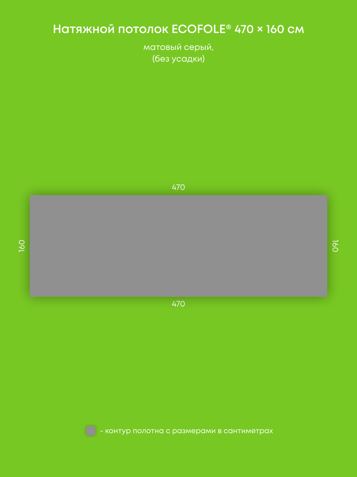 Натяжной потолок серый матовый, изготовленный по индивидуальным размерам покупателя, для помещения площадью 7.5 м2
