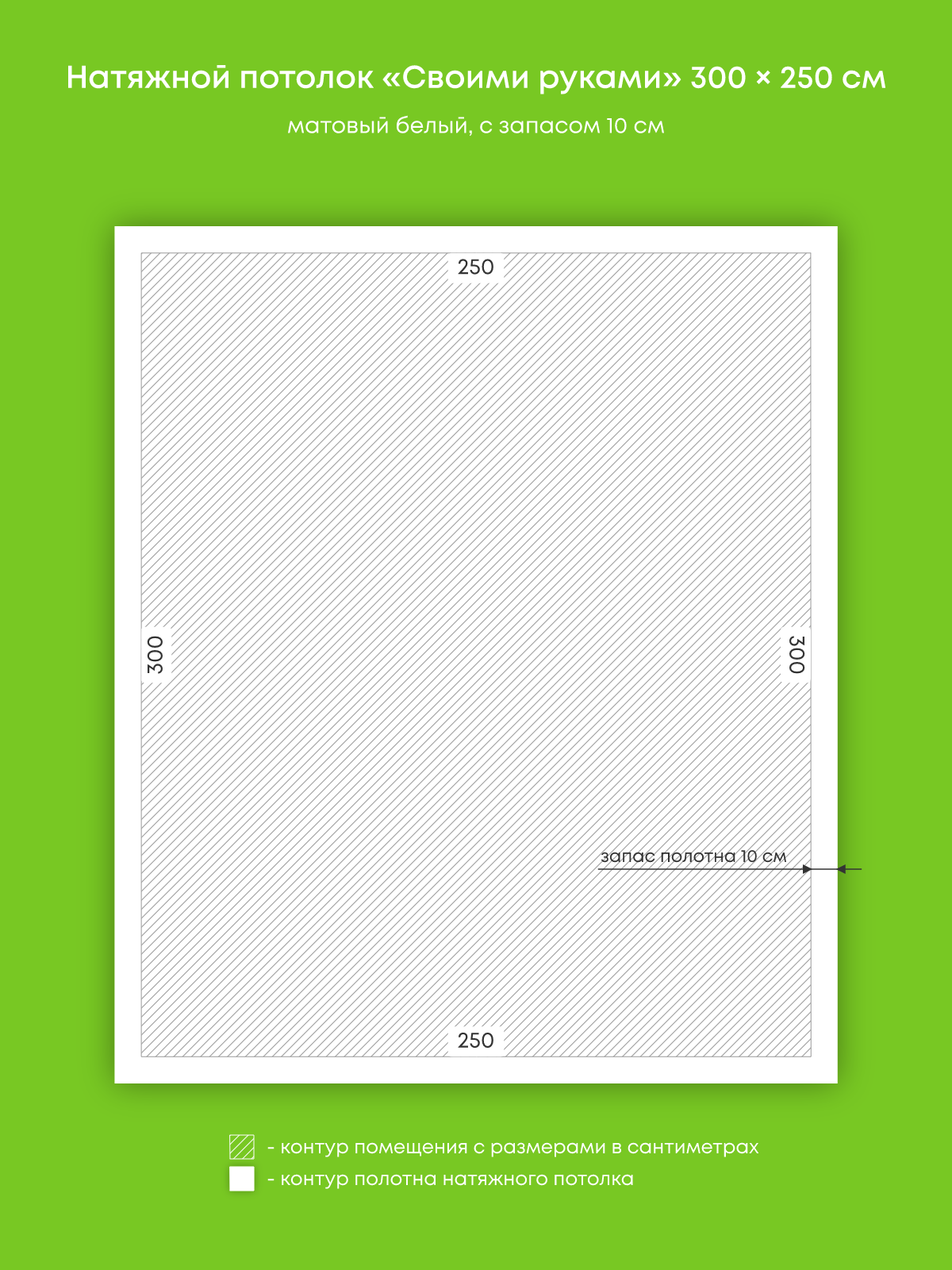 Натяжной потолок белый матовый, изготовленный по индивидуальным размерам покупателя, для комнаты площадью 7.5 м2