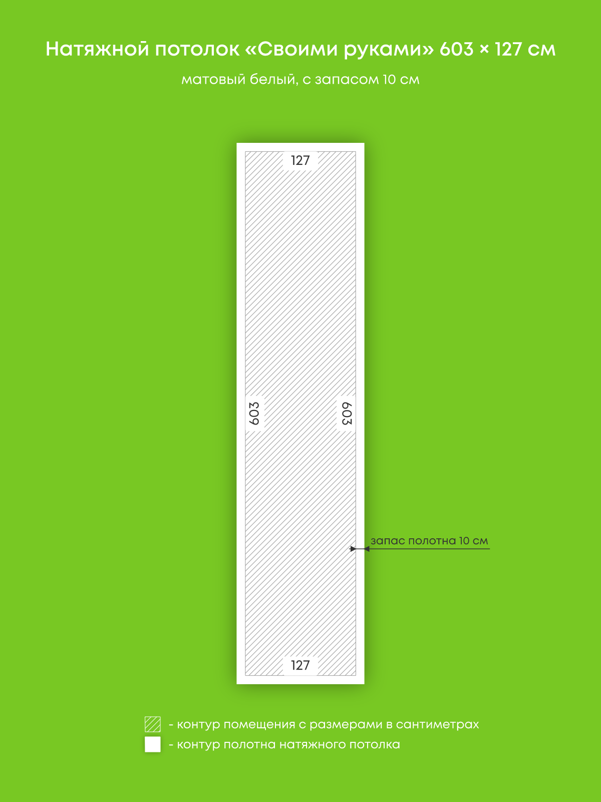 Натяжной потолок белый матовый, изготовленный по индивидуальным размерам покупателя, для помещения площадью 7.7 м2