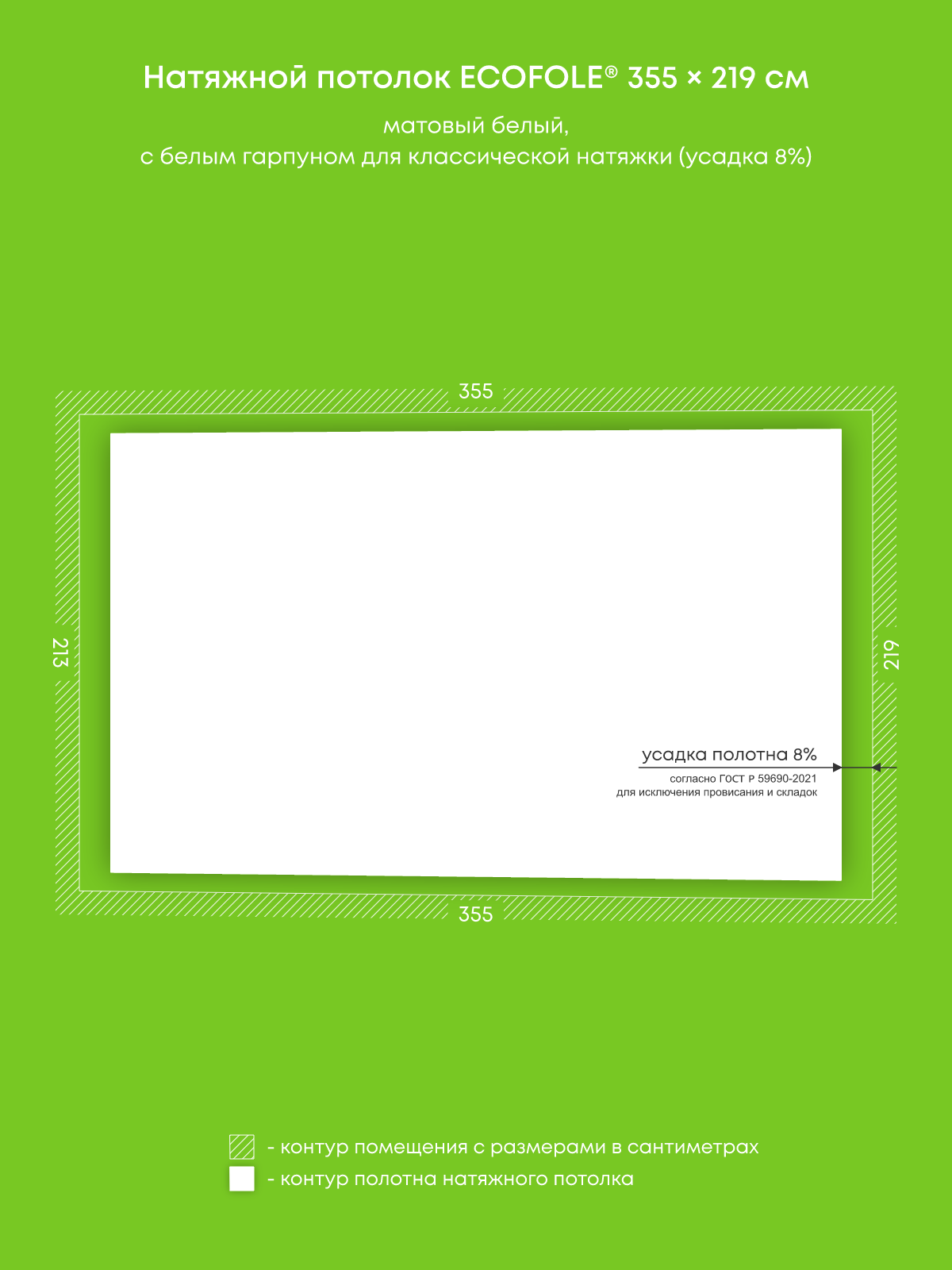 Натяжной потолок белый матовый, изготовленный по индивидуальным размерам покупателя, для комнаты площадью 7.7 м2