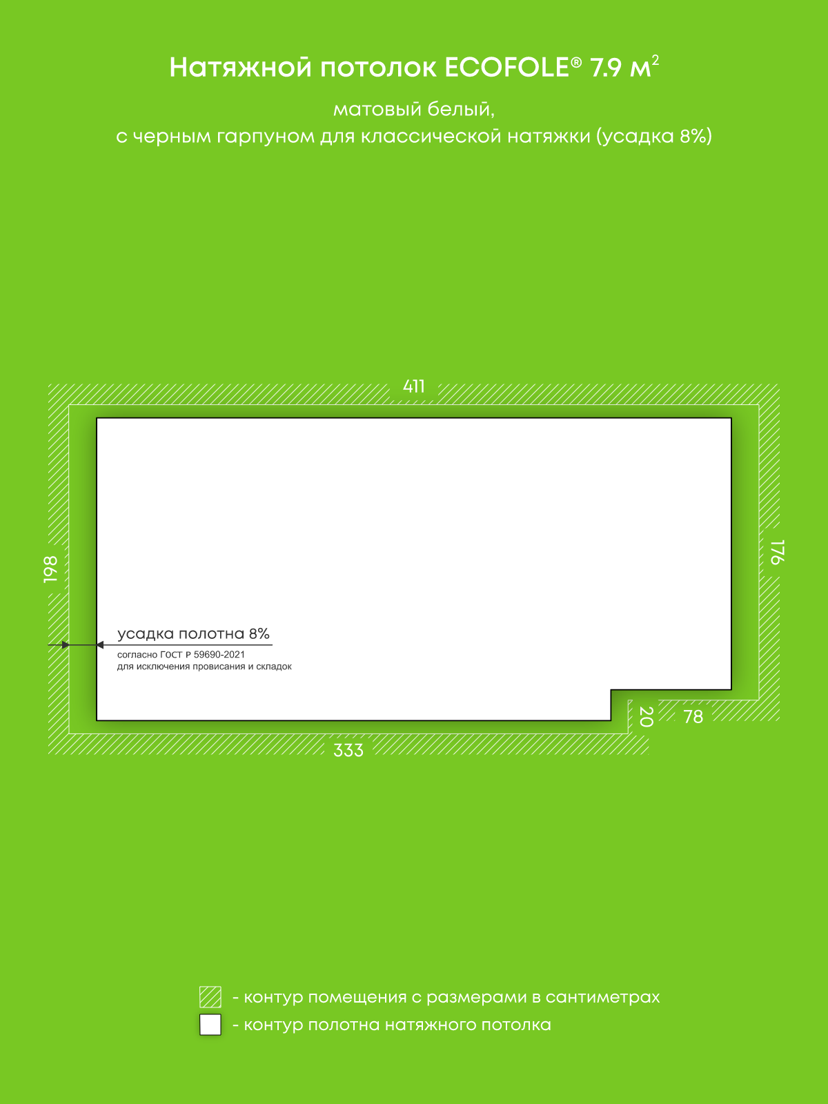 Матовый натяжной потолок 7.9 м2