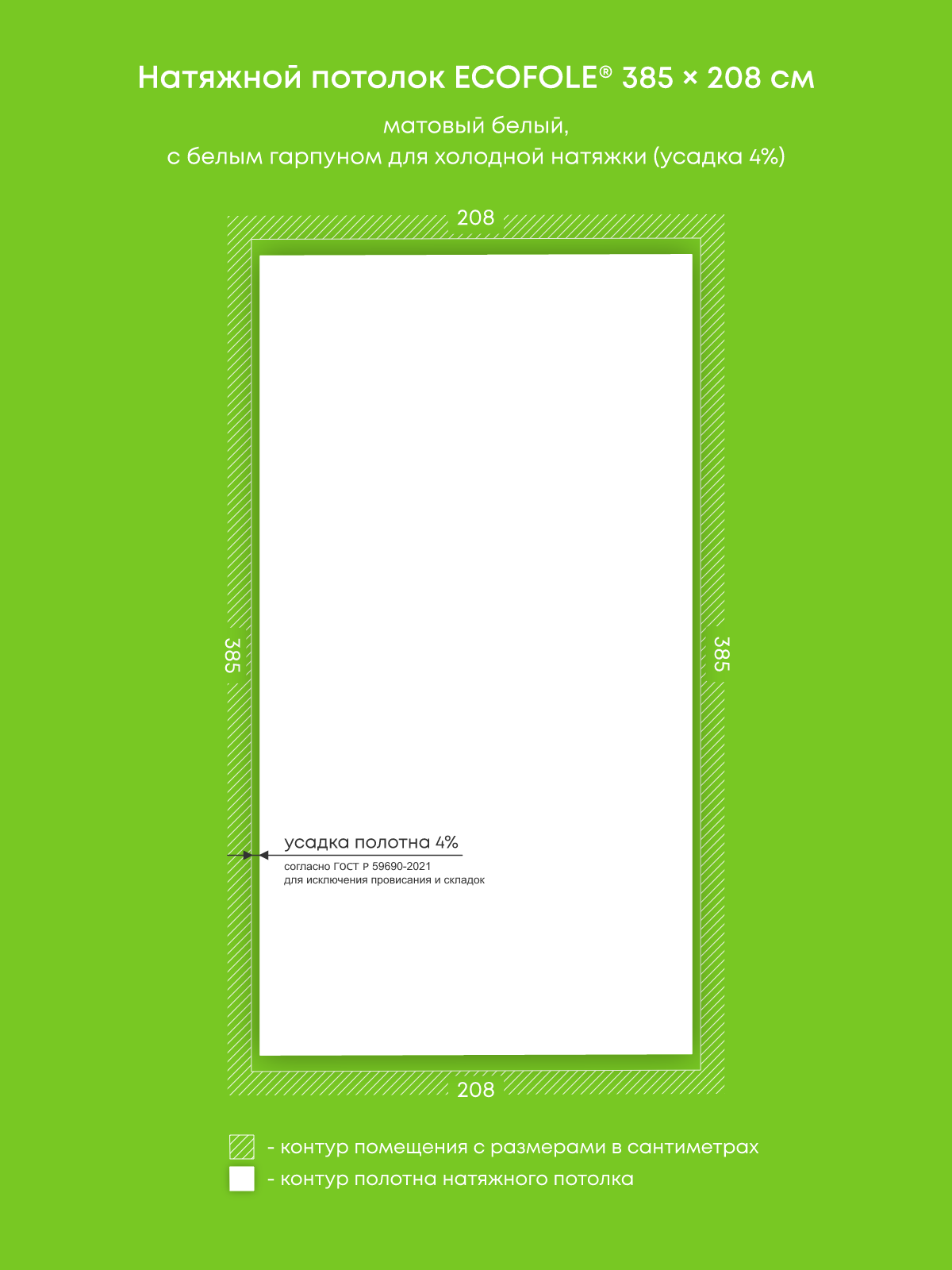 Натяжной потолок белый матовый, изготовленный по индивидуальным размерам покупателя, для помещения площадью 8 м2