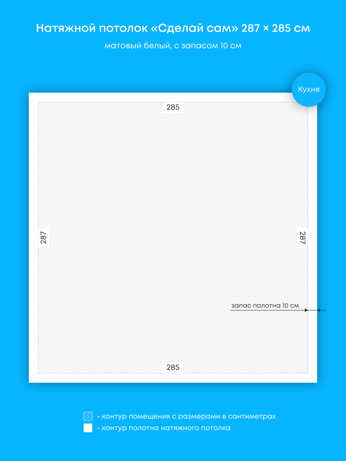 Натяжной потолок белый матовый, изготовленный по индивидуальным размерам покупателя, для кухни площадью 8.2 м2