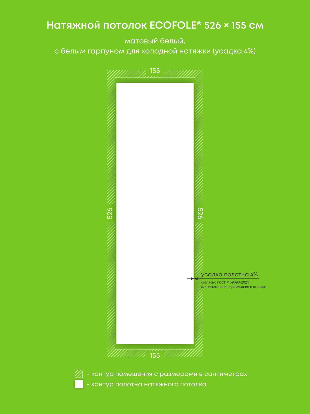 Натяжной потолок белый матовый, изготовленный по индивидуальным размерам покупателя, для помещения площадью 8.2 м2