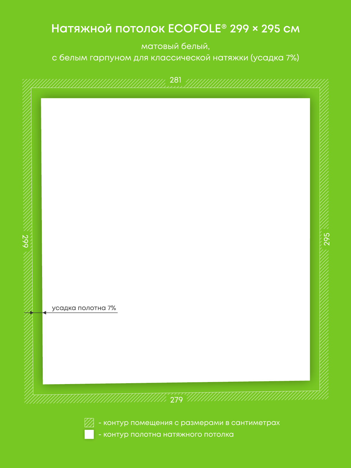 Матовый натяжной потолок 8.3 м2