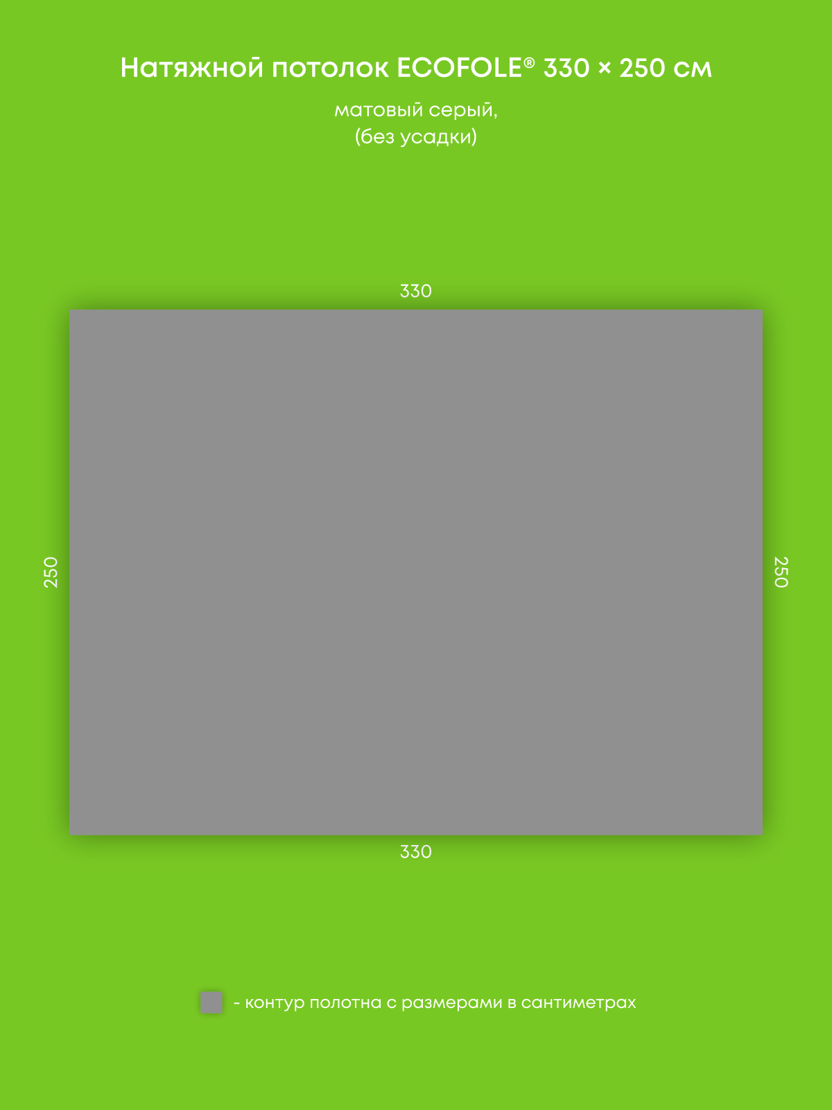 Натяжной потолок серый матовый, изготовленный по индивидуальным размерам покупателя, для помещения площадью 8.3 м2