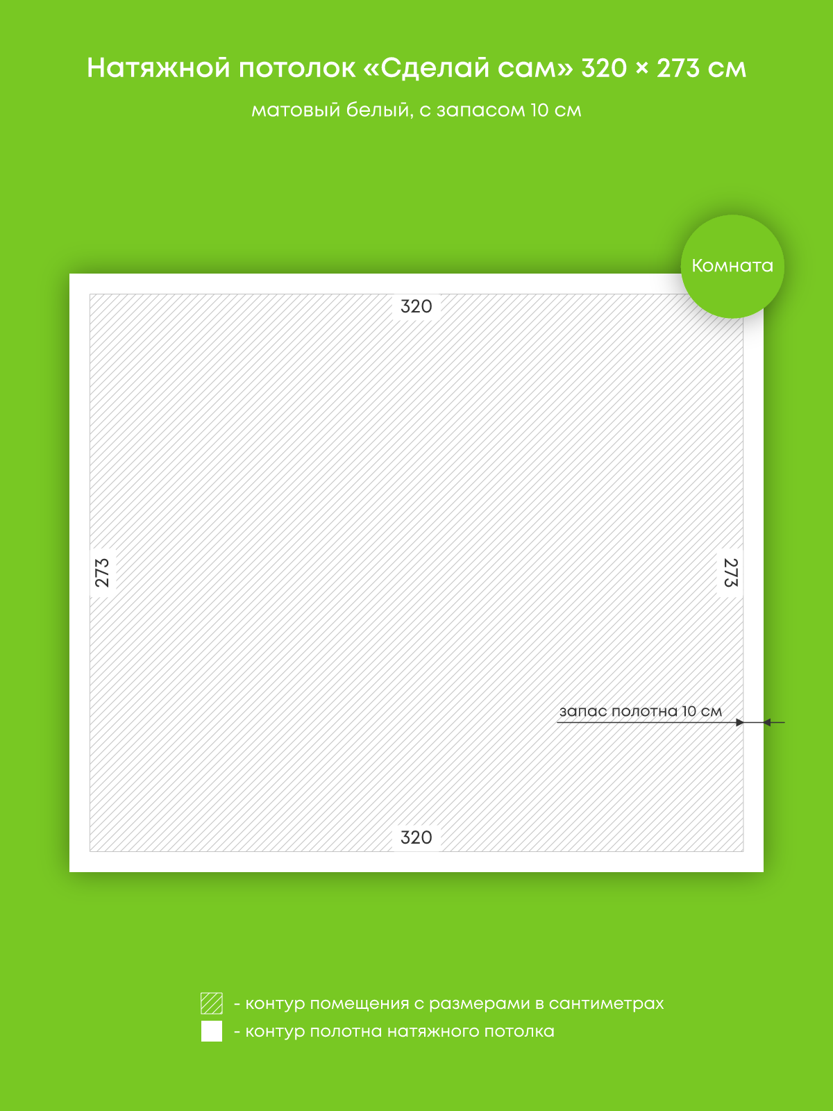Натяжной потолок белый матовый, сделай сам, изготовленный по индивидуальным размерам покупателя, для помещения площадью 8.7 м2