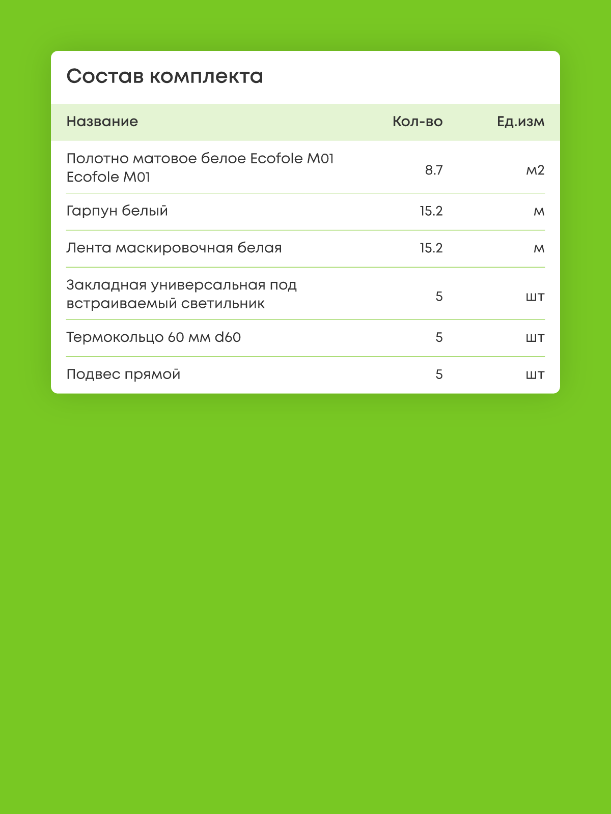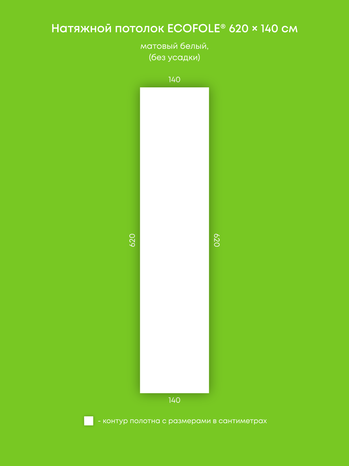 Натяжной потолок белый матовый, изготовленный по индивидуальным размерам покупателя, для помещения площадью 8.7 м2