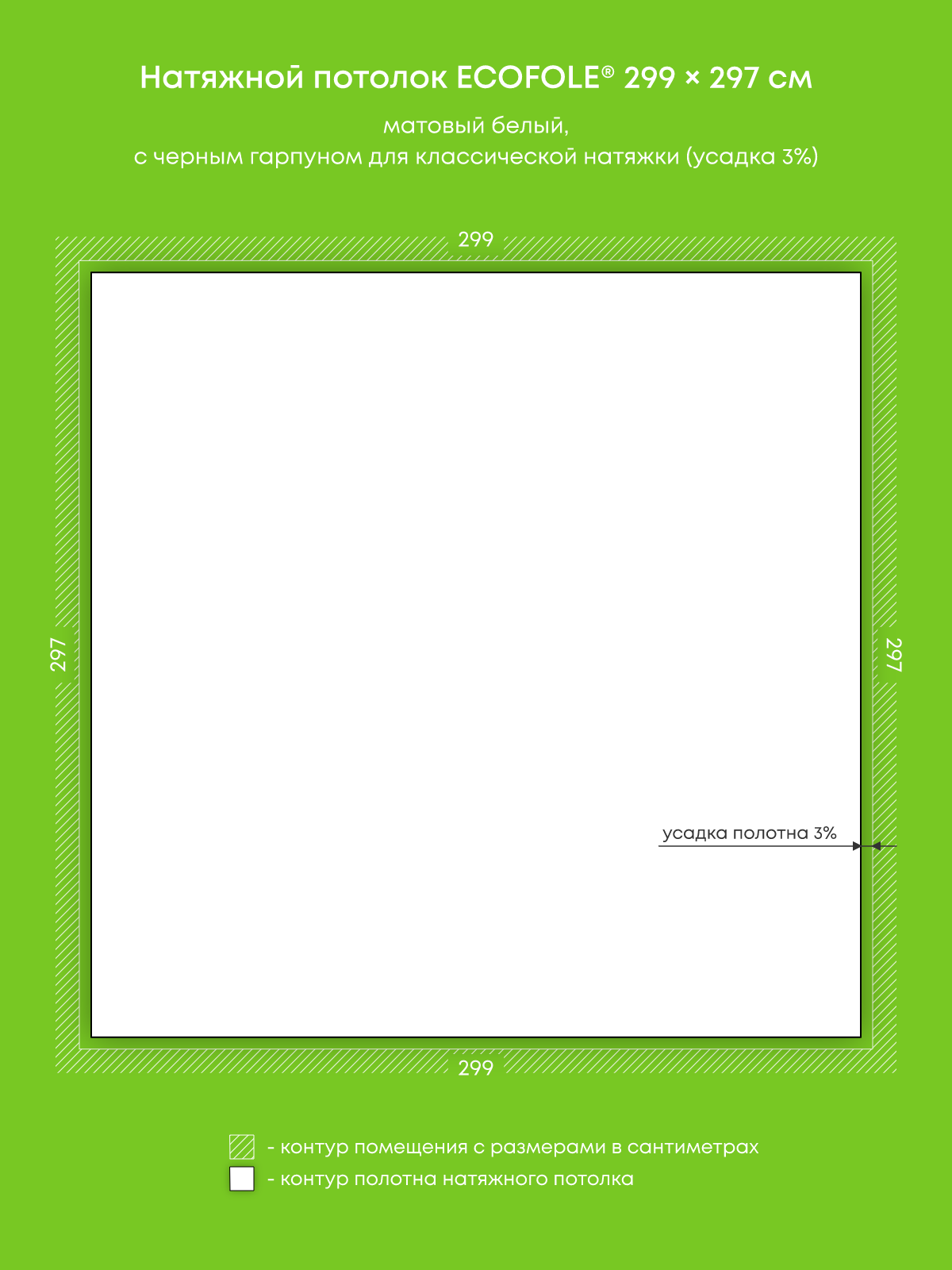 Натяжной потолок белый матовый, изготовленный по индивидуальным размерам покупателя, для помещения площадью 8.9 м2