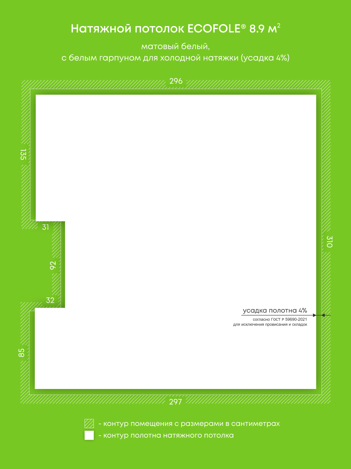 Матовый натяжной потолок 8.9 м2