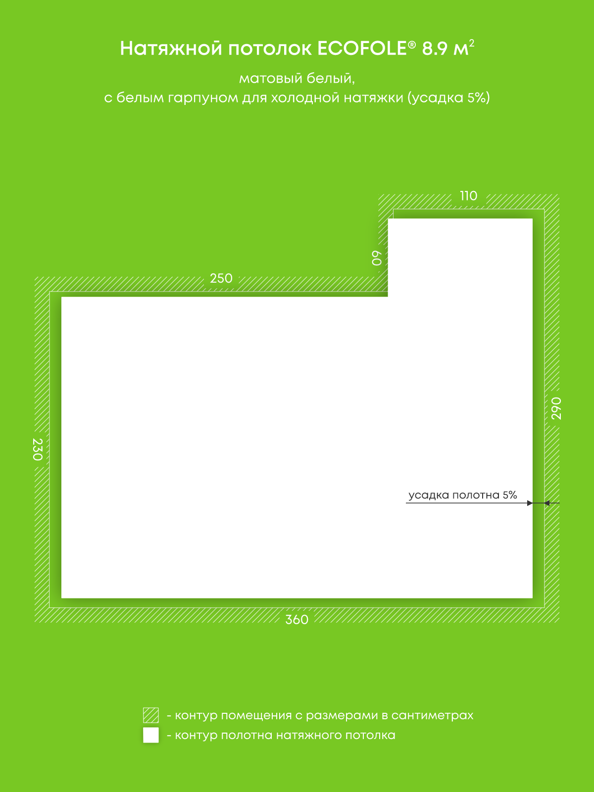 Матовый натяжной потолок 8.9 м2