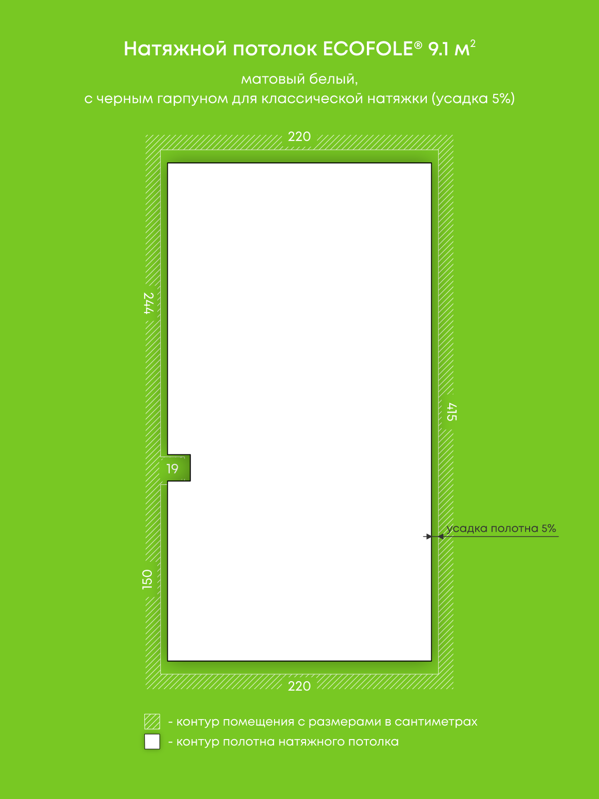 Матовый натяжной потолок 9.1 м2