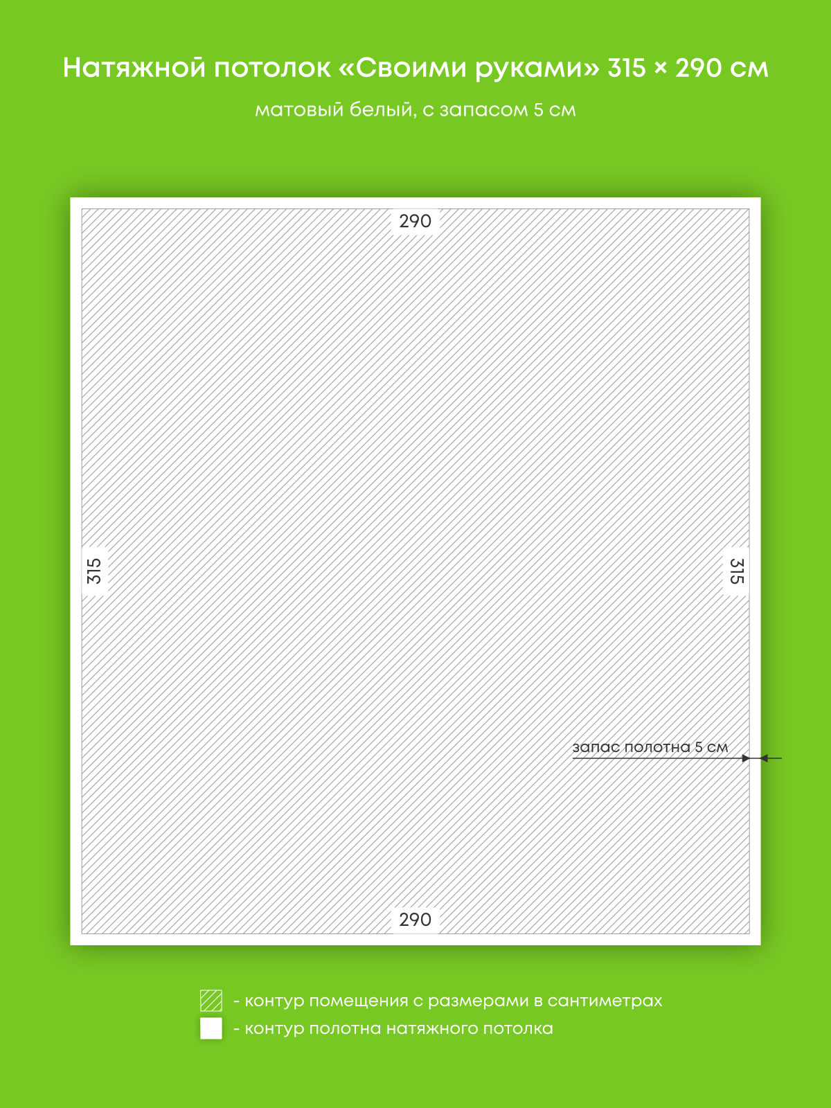 Натяжной потолок белый матовый, изготовленный по индивидуальным размерам покупателя, для комнаты площадью 9.1 м2