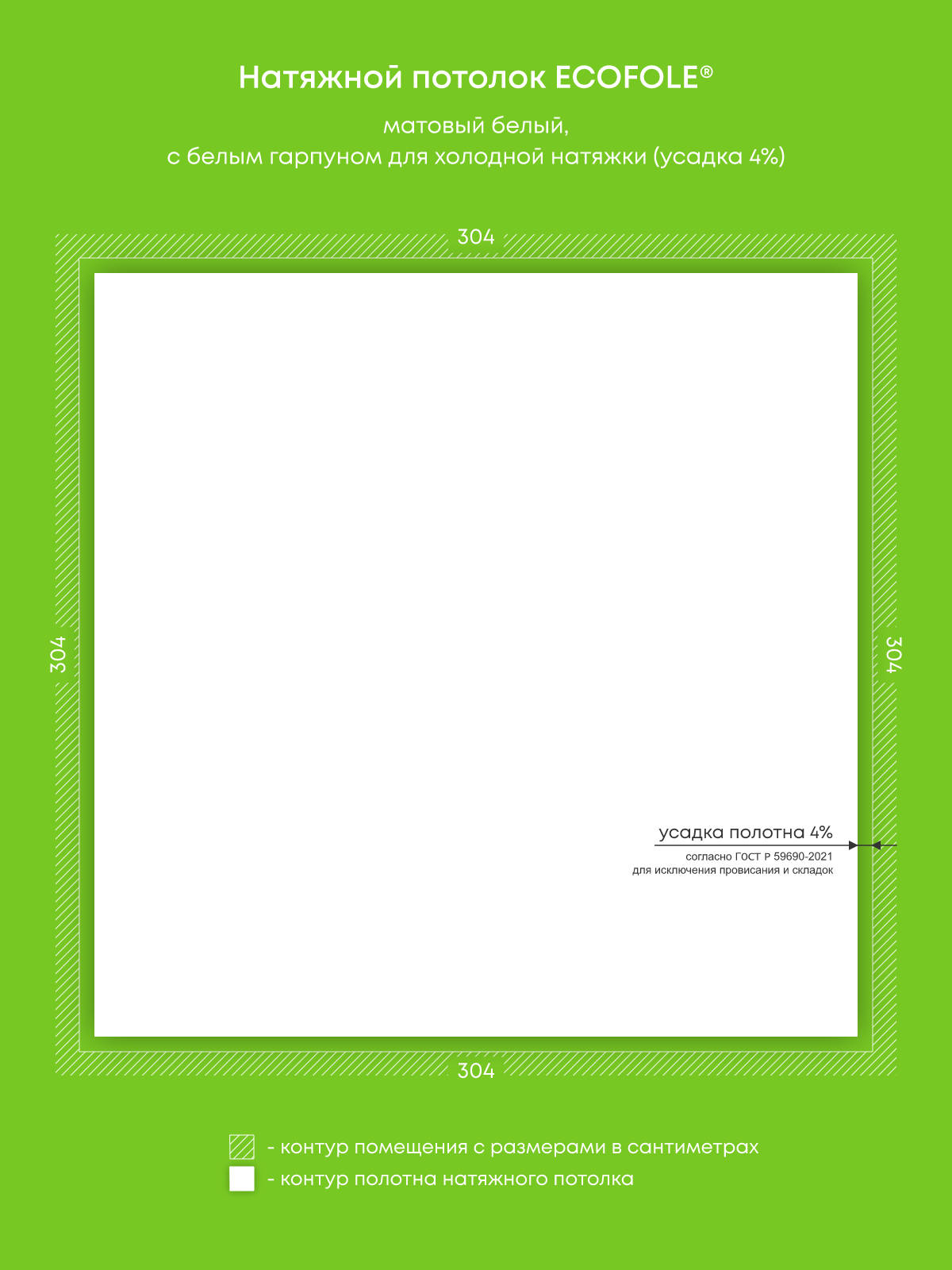 Натяжной потолок белый матовый, изготовленный по индивидуальным размерам покупателя, для комнаты площадью 9.2 м2