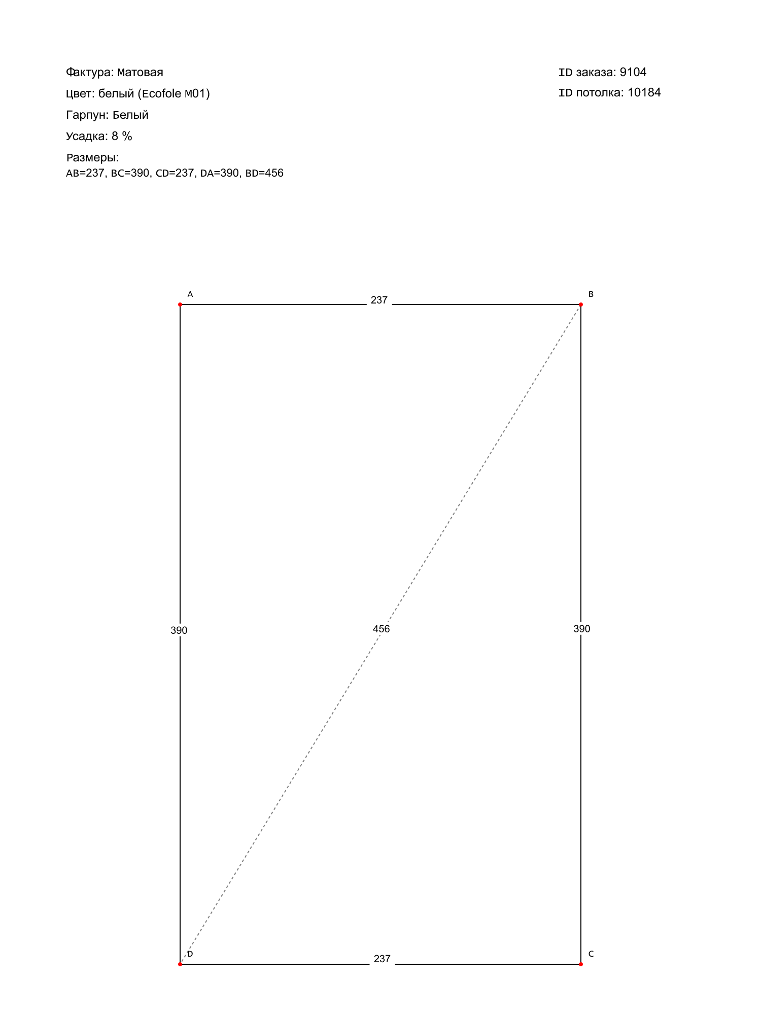 Натяжной потолок белый матовый, классической натяжки, изготовленный по индивидуальным размерам покупателя, для помещения площадью 9.2 м2