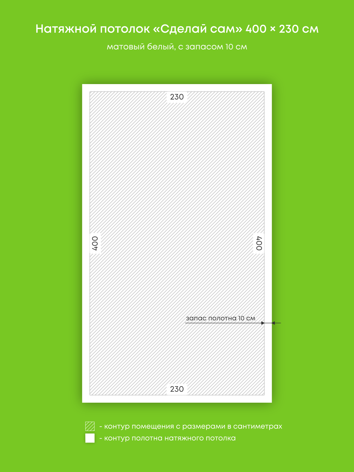 Натяжной потолок белый матовый, изготовленный по индивидуальным размерам покупателя, для помещения площадью 9.2 м2